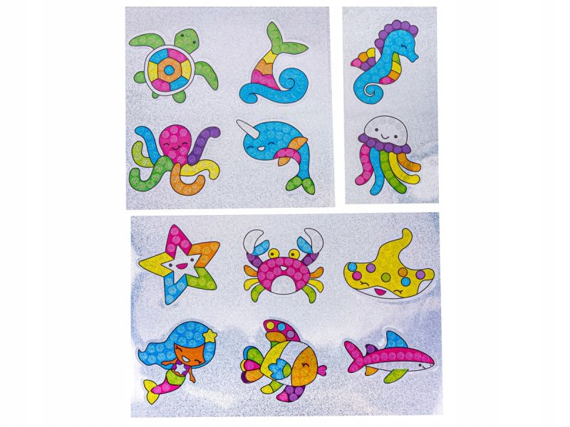 ➡️ Пропонований набір містить усі необхідні елементи, щоб скласти готові пазли на тему підводних тварин і русалок :) Найцікавіше — обвести поля на стікерах відповідними казково барвистими лініями діаманти.\