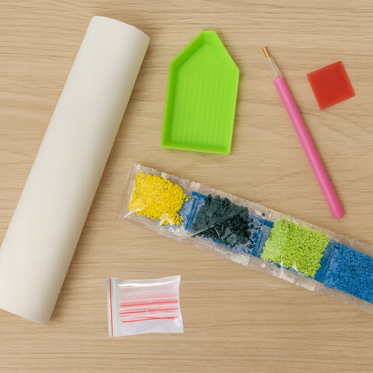 У набір входять всі необхідні аксесуари - лоток, аплікатор і віск для ефективної та комфортної роботи. Додаткові пакети допомагають зберігати зайві діаманти.