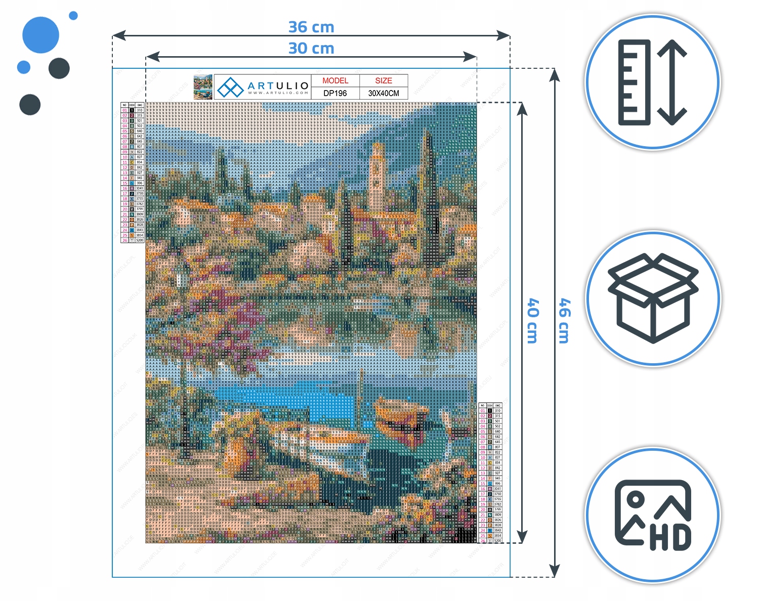 Обираючи набір для алмазної вишивки, звертайте особливу увагу на розміри області наклеювання, а не на розміри всього полотна. Розмір зображення - це найважливіше! - відсутність полів, таблиць і логотипів. Наші описи завжди містять надійні розміри - як схеми, так і полотна!