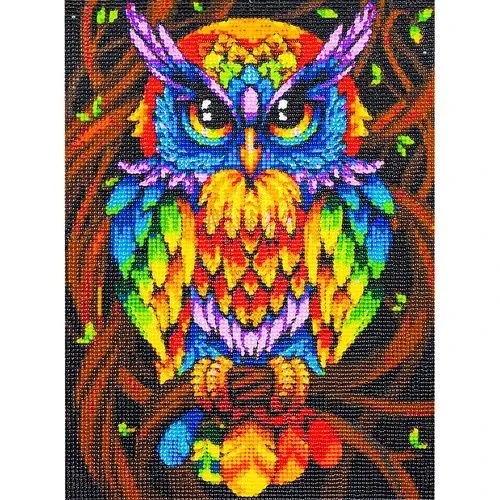 Алмазна вишивка КАРТИНА велика 40х30 СОВА КОЛЬОРОВА пташка сова на дереві