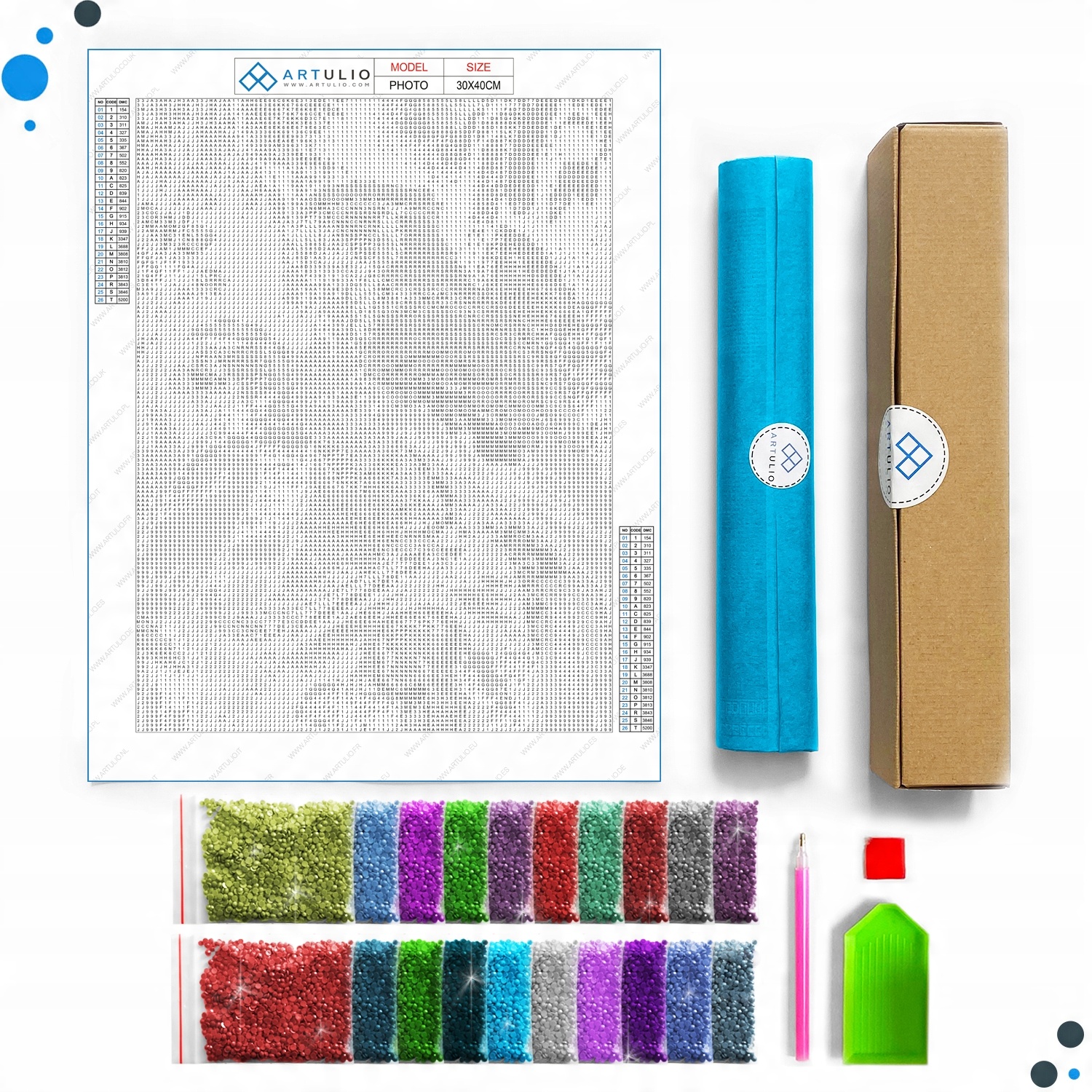 Вам потрібно використати 14 946 діамантів, щоб створити повну вишивку з цієї пропозиції. Що, якщо втрачено кілька кристалів? Драма!!! Але не з АРТУЛІО. Кожен мішок містить щонайменше двадцять відсотків надлишку кристалів. Набір готовий до всього :)