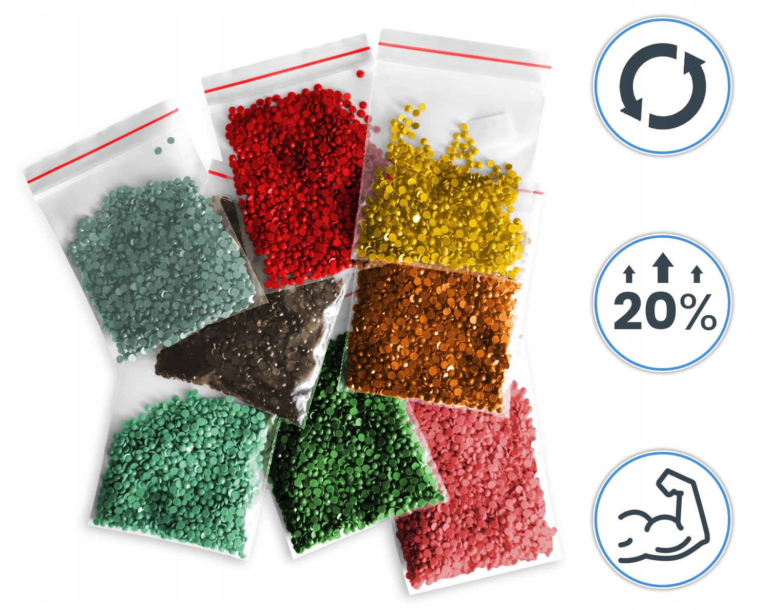 Для виготовлення вишивки використовуються два типи пакетів: термозварені, які можна відкрити лише один раз, і тоді кристали вилітають з них, створюючи непотрібний безлад, і ми використовуємо: сумки-нитки, які можна нескінченно відкривати і закривати! Якому ви віддаєте перевагу?