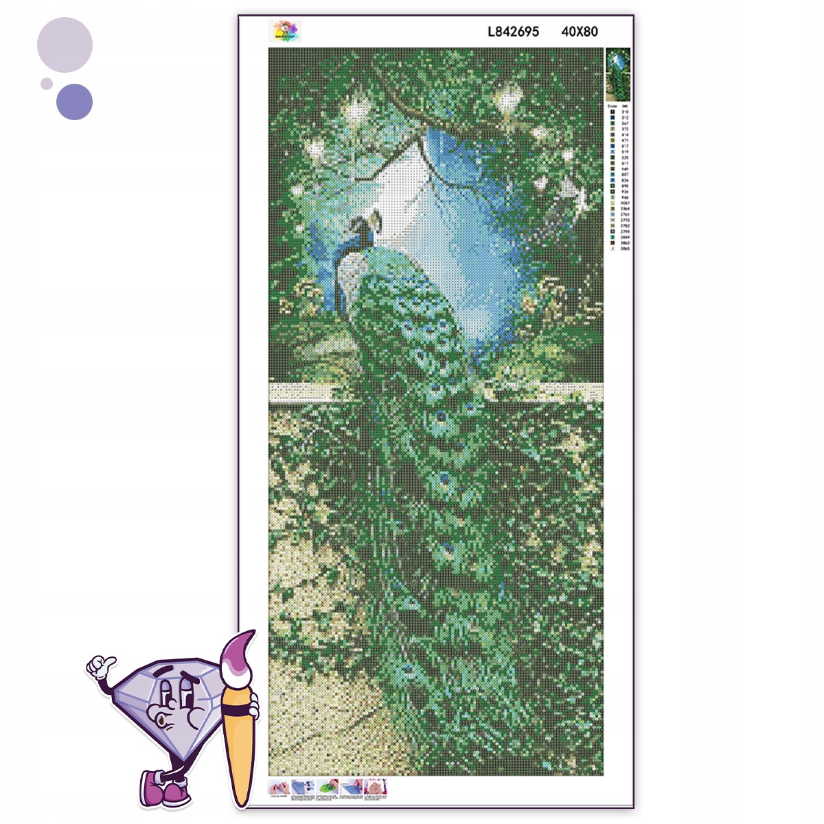 АЛМАЗНА ВИШИВКА ВЕЛИКА 40x80 Алмазна картина Мозаїка Алмазна квітка павича XL