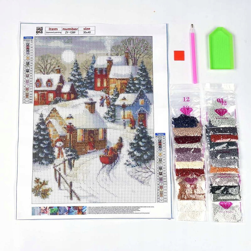 ЗИМА АЛМАЗОВА ВИШИВКА Алмазна картина 5D 30x40 АЛМАЗОВА МОЗАЇКА РІЗДВО