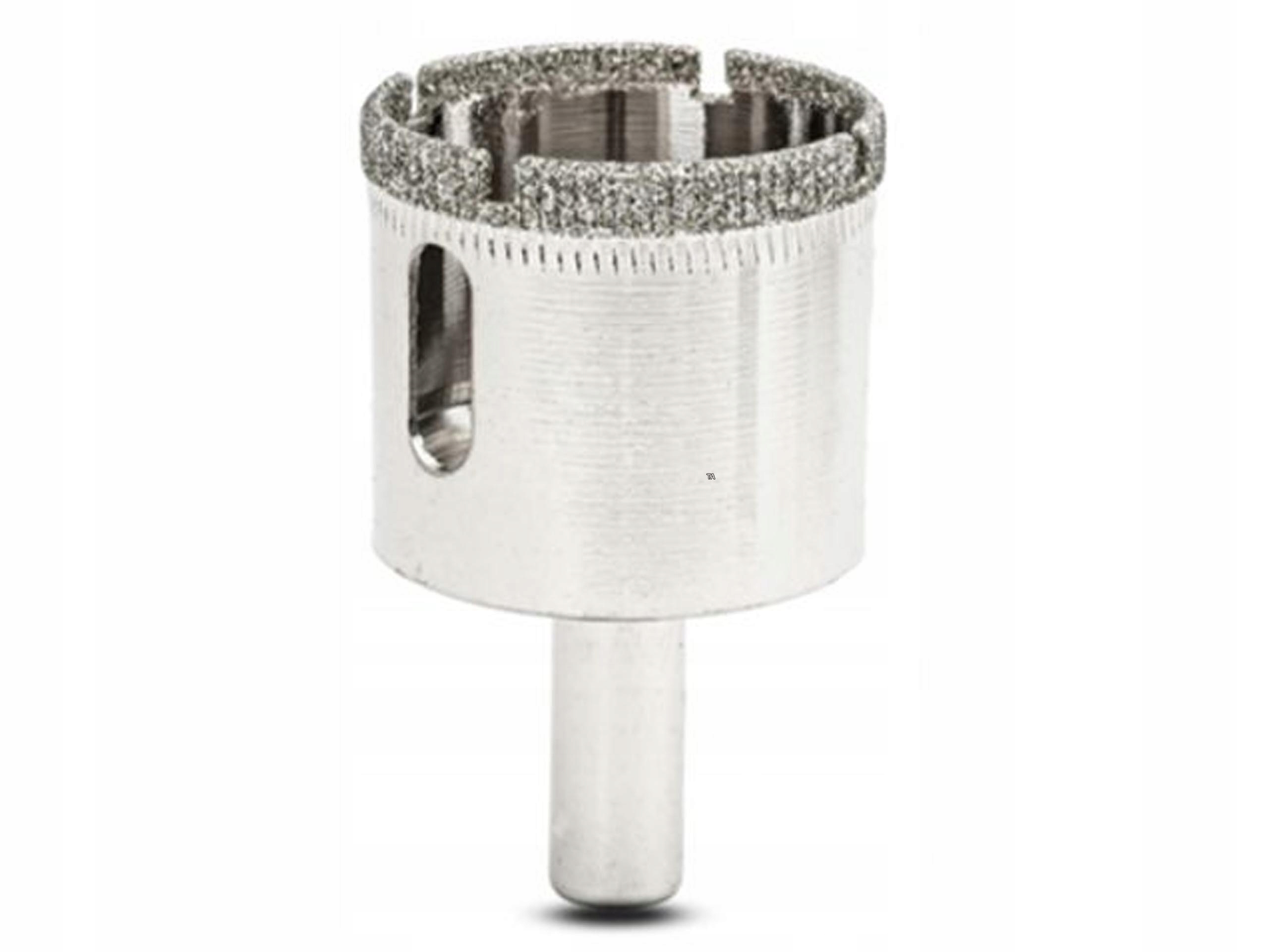 Кольцева пила виготовлена з високоякісної вуглецевої сталі, а робоча частина — це дуже дрібна та щільна алмазна зернистість, припаяна вакуумом до циліндричного сталевого корпусу.