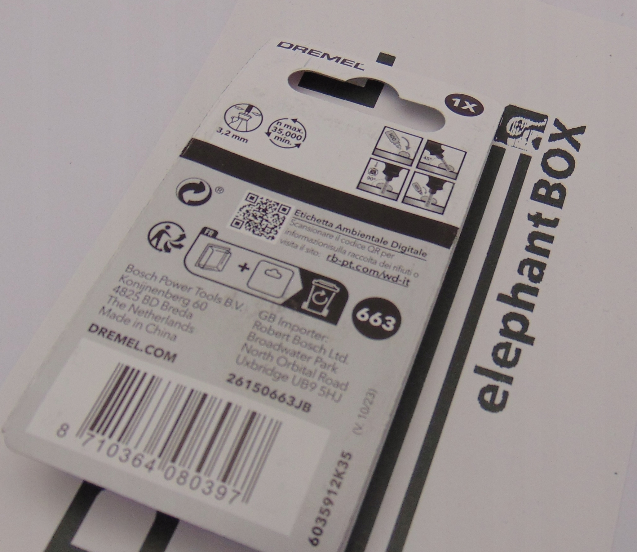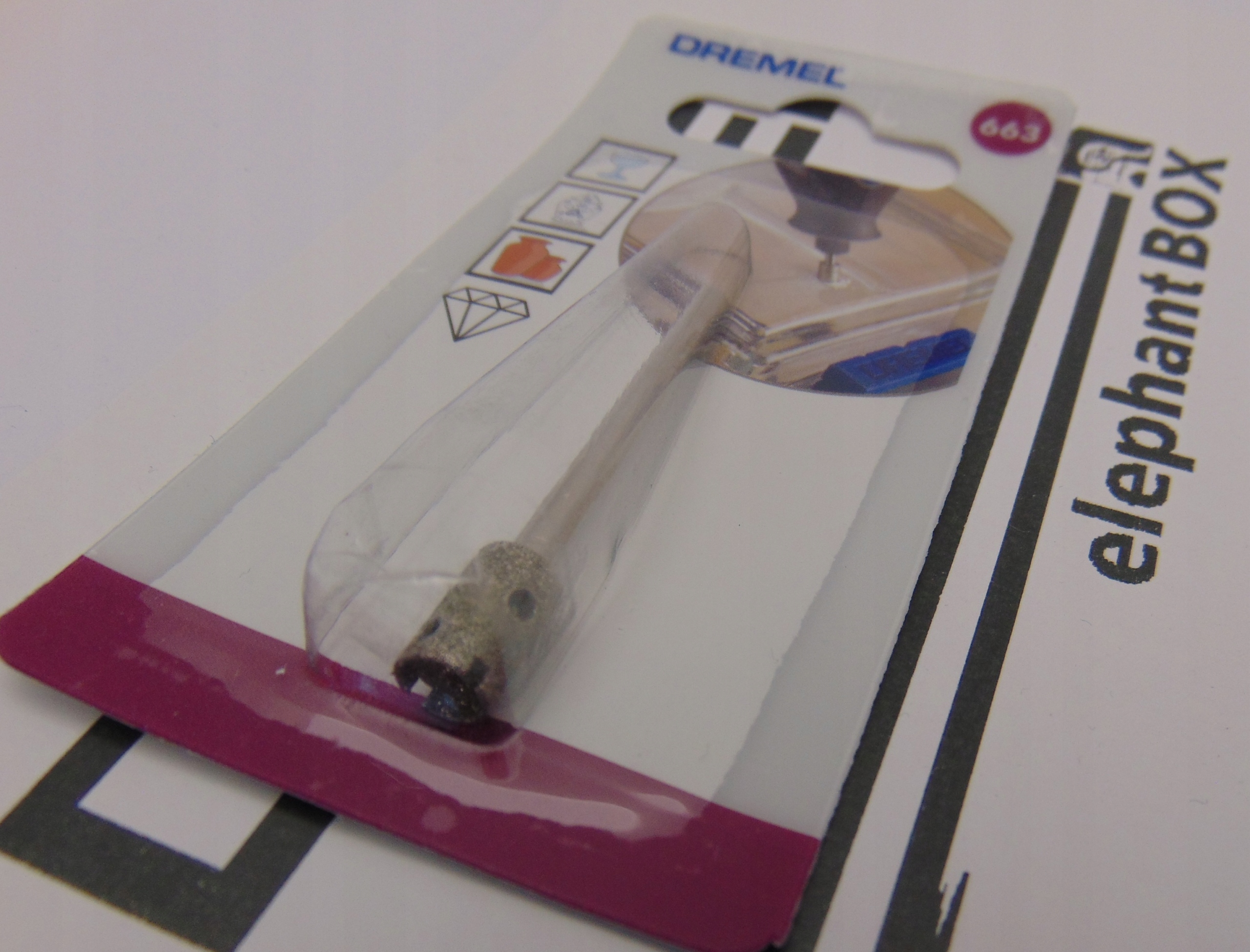 Свердло для скла Dremel 663 чудово робить отвори. Можливість виконання ідеальних отворів діаметром 6,4 мм. Для використання з акумуляторними інструментами DREMEL.