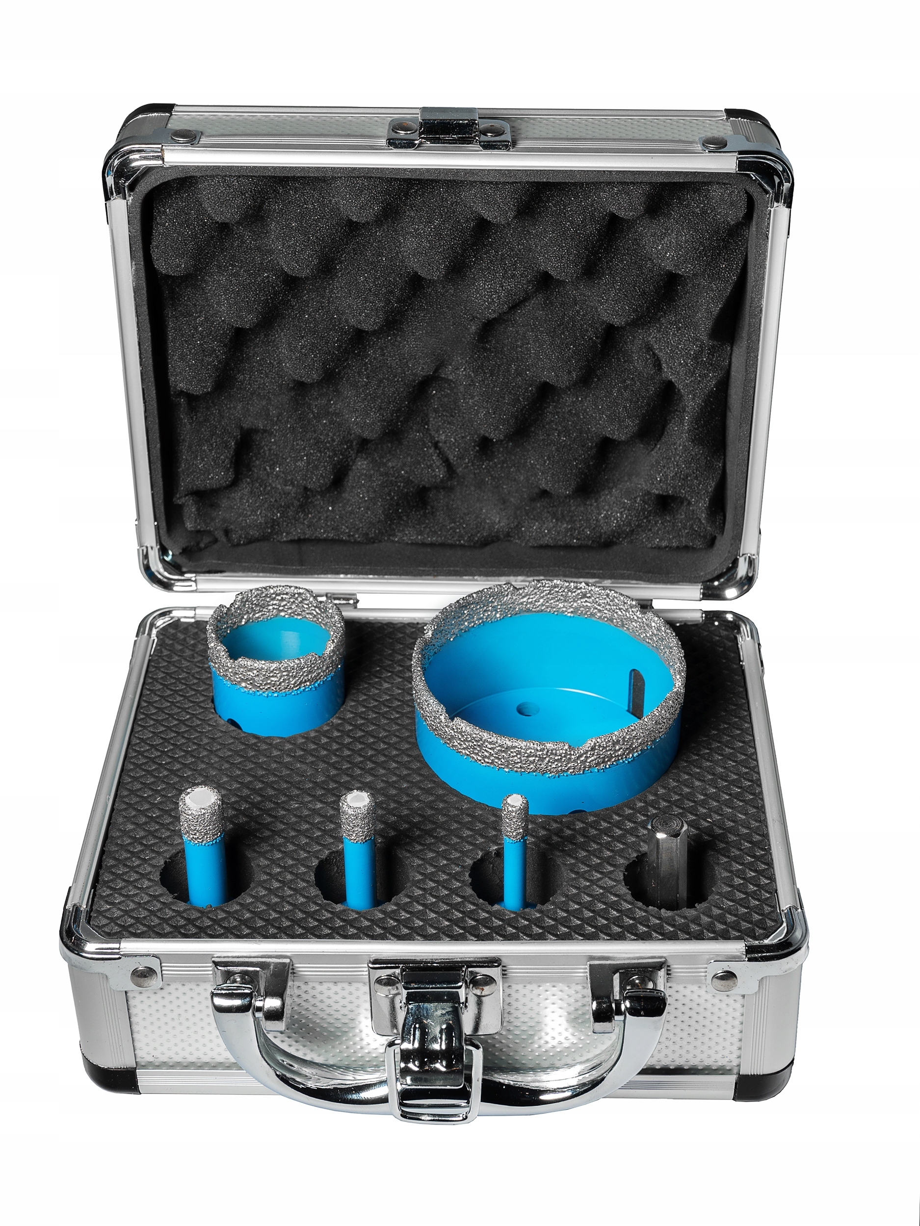 Набір алмазних колодкових пилок розміром від 6 до 68 мм. Оснащений монтажною різьбою М14 для кріплення на кутові шліфувальні машини. Ідеально підходить для плиточника.