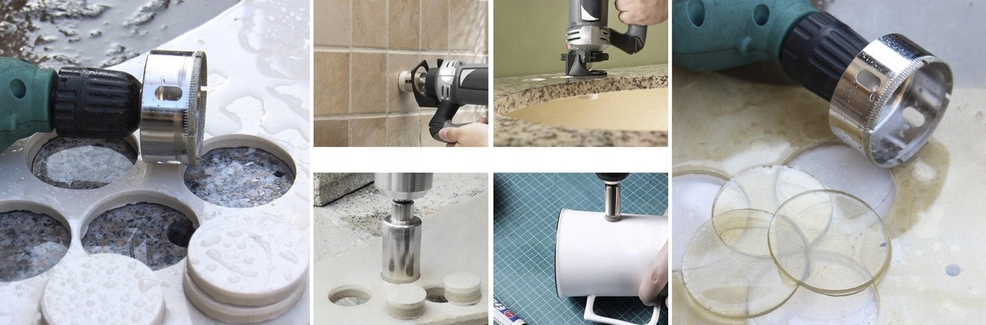 Завдяки гостроті та довговічності алмазні кольцеві пилки дозволяють свердлити точні отвори. Призначені для виконання точних і гладких отворів в керамічній або кам'яній плитці для електричних і водопровідних установок.
