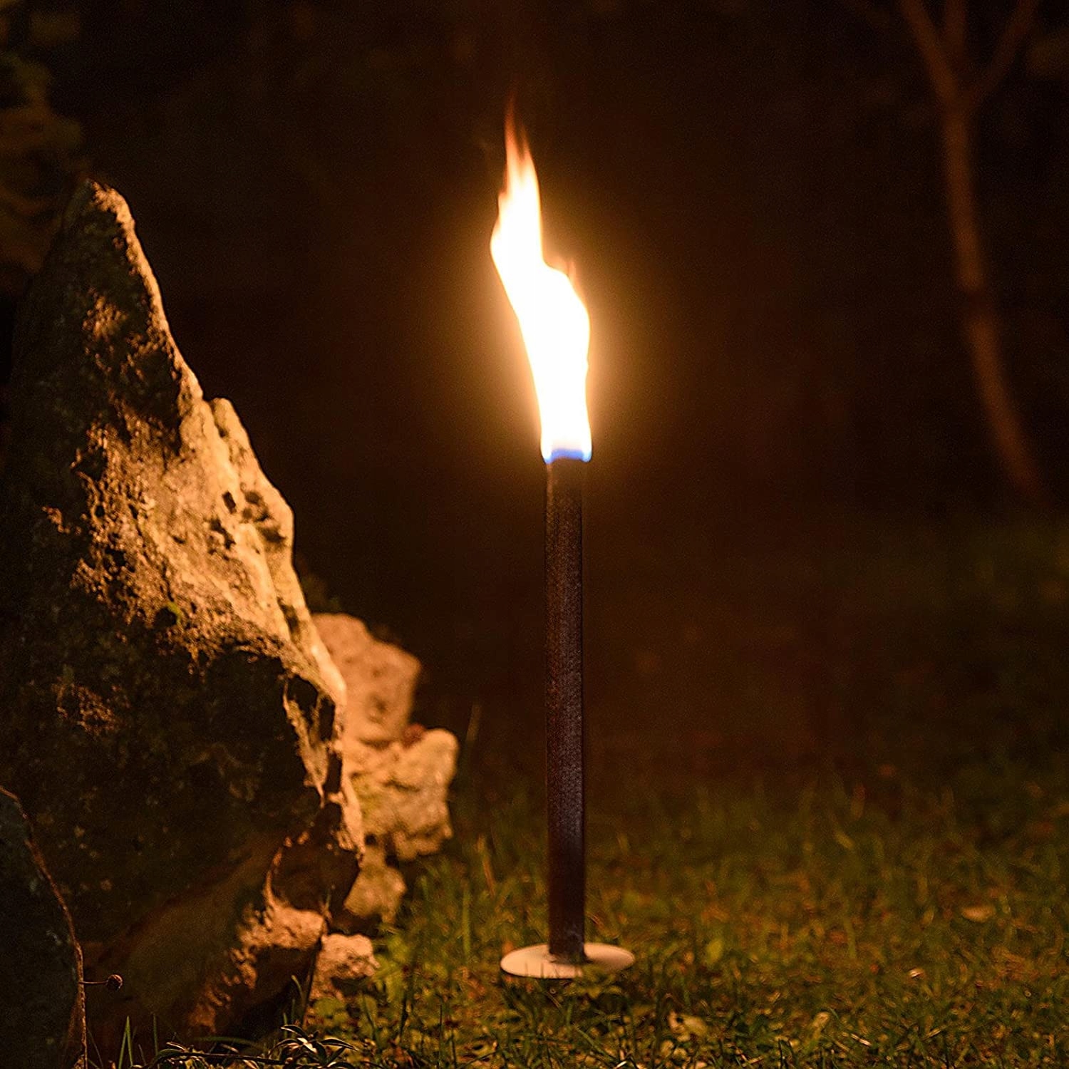 - В набір входить дерев'яний стрижень і захист від крапель; садові факели не розсипаються при горінні
