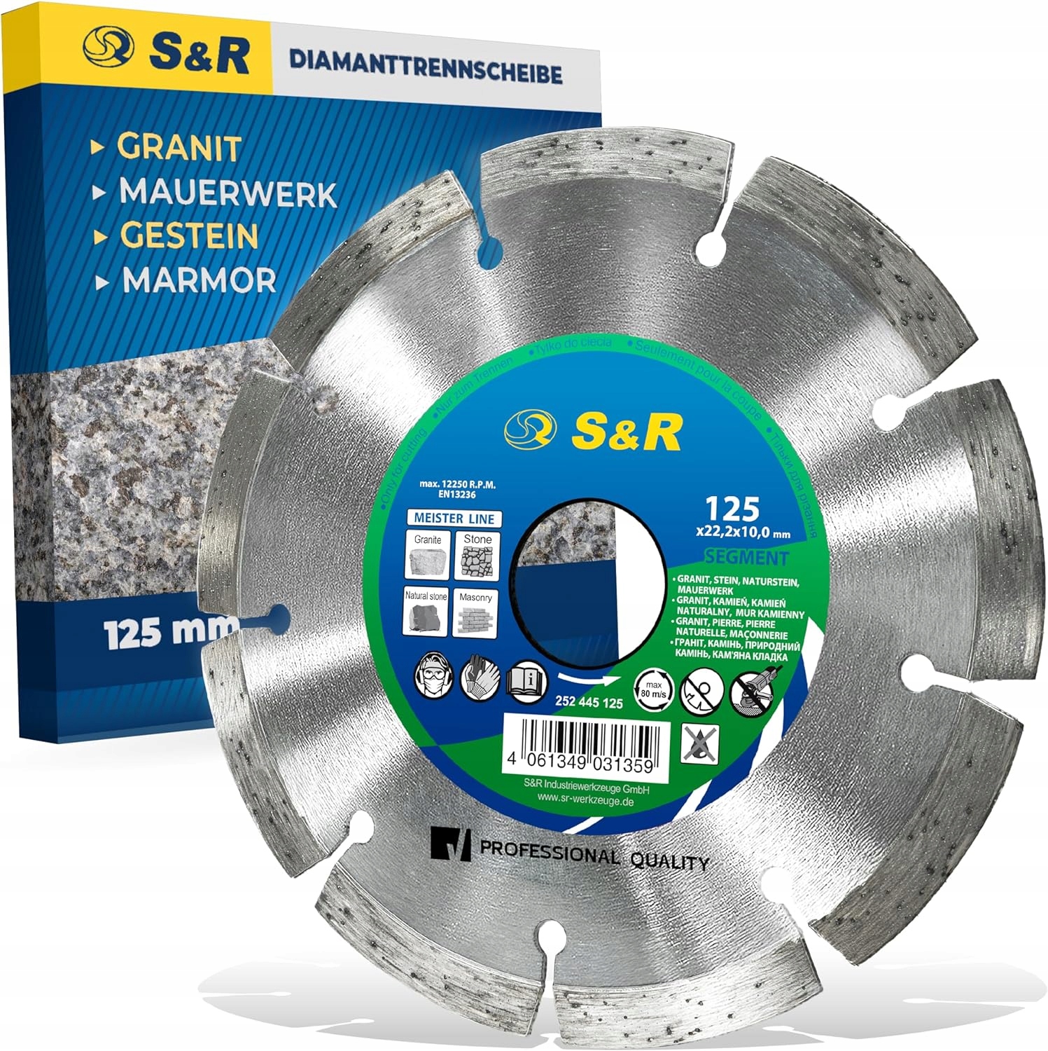 Сегментований алмазний відрізний диск S&R Meister 125x22,2x2,2 мм - граніт, камінь, бетон