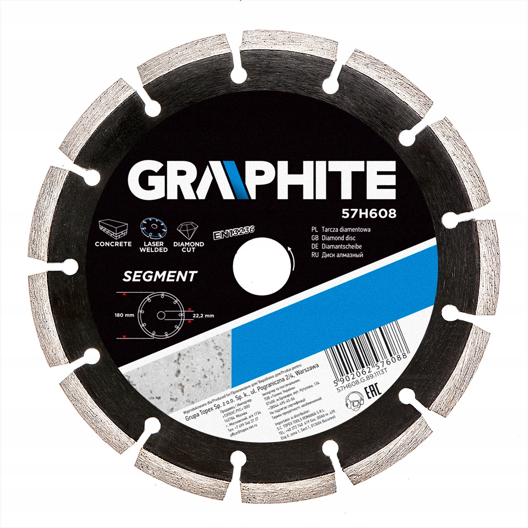 Алмазний диск 180х22,2 м, сегментований, ГРАФІТ