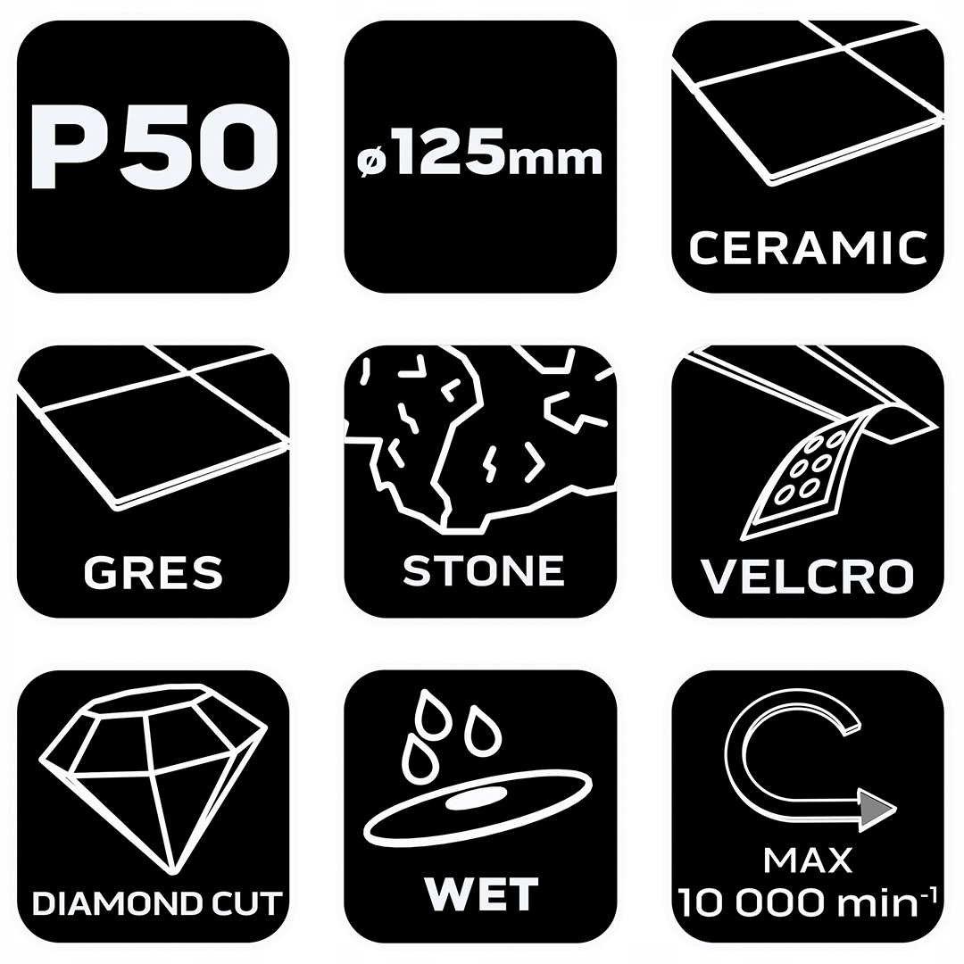 Алмазний полірувальний диск на липучці 125 мм, P50