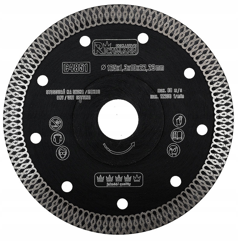 Тонкий алмазний диск, призначений для різання таких матеріалів, як клінкер, плитка, кераміка, мармур, граніт, черепиця.