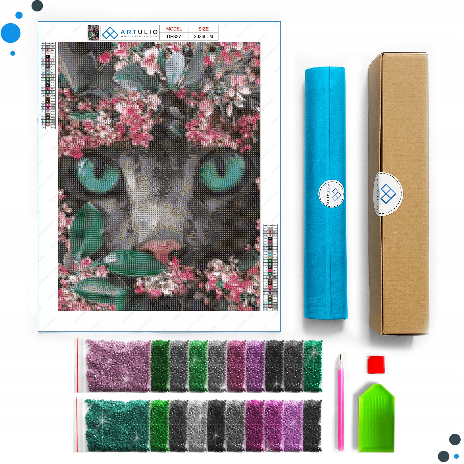 Вам потрібно використати 14 946 діамантів, щоб створити повну вишивку з цієї пропозиції. Що, якщо втрачено кілька кристалів? Драма!!! Але не з АРТУЛІО. Кожен мішок містить щонайменше двадцять відсотків надлишку кристалів. Набір готовий до всього :)