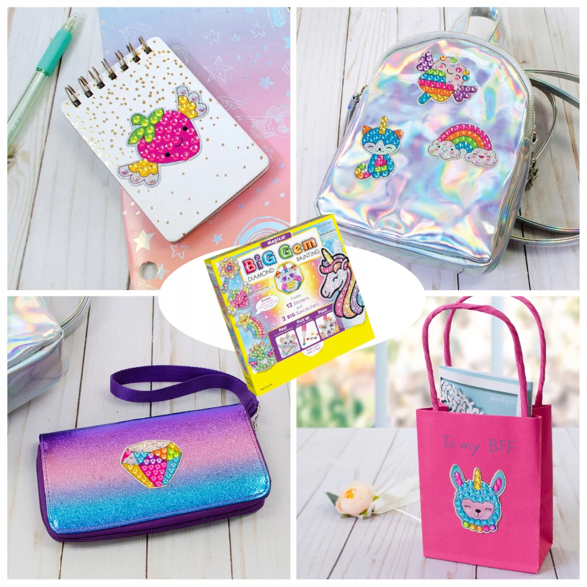 Гра з наклеюванням діамантів навчає творчості та тренує координацію рук і очей. Усе це робить гру неймовірно захоплюючою, а можливість прикрашати улюблені аксесуари власними прикрасами робить цей набір ідеальним!