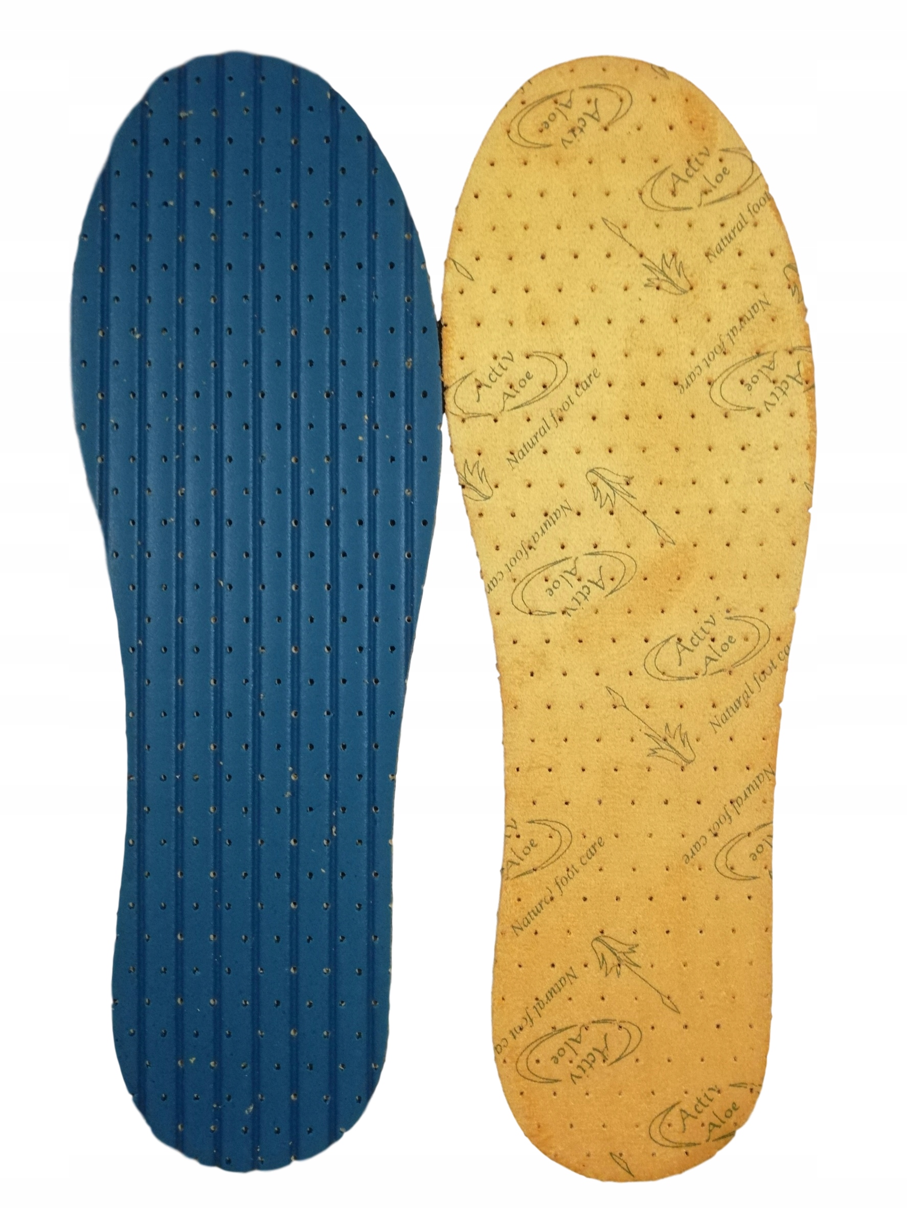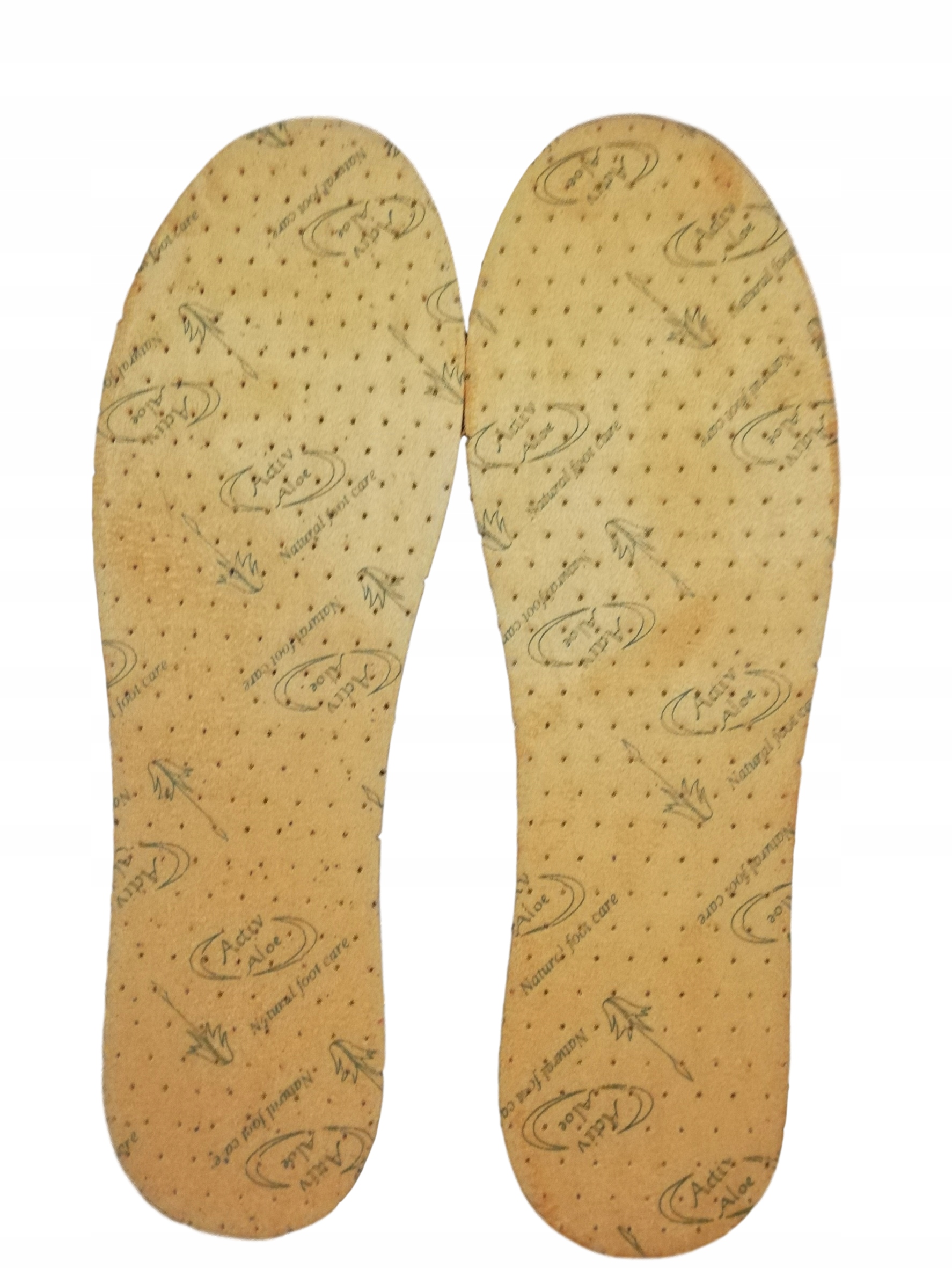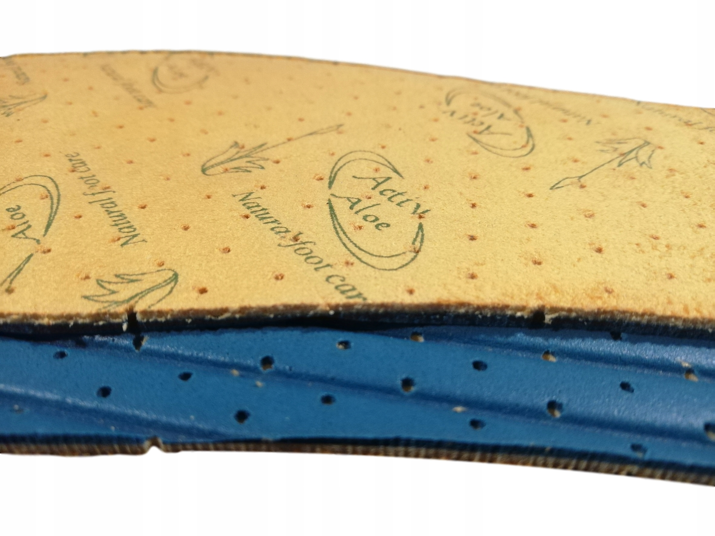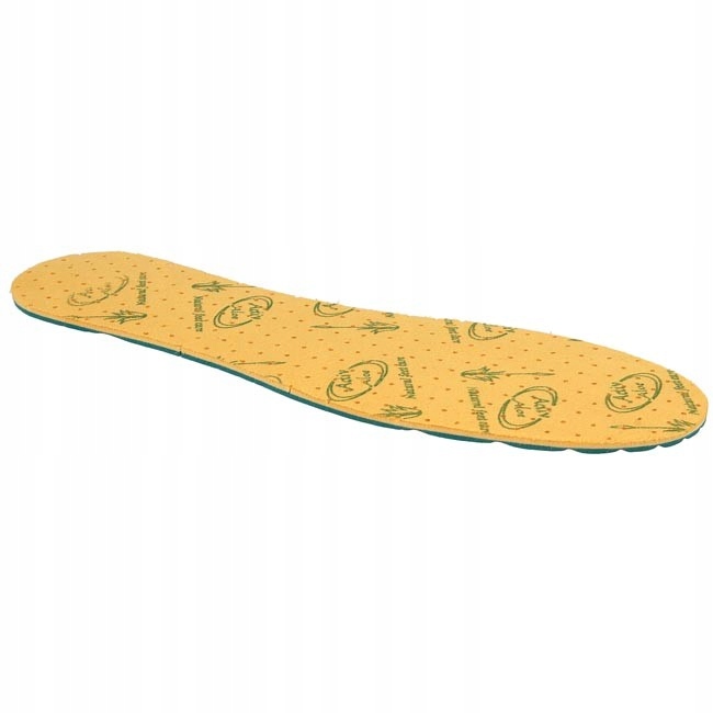 ALOE VERA INSERT - устілка зі свіжим ароматом, що містить екстракт алое. Забезпечує винятковий комфорт завдяки еластичному латексу та м'якому, приємному на дотик текстильному покриттю. Алое має цілющі властивості. Зменшує біль і запалення, прискорює загоєння шкіри, стимулює ріст і відновлення шкіри. Перфорація і поздовжньо-профільна форма латексу забезпечують циркуляцію повітря. Чудова устілка для вихідного взуття, весни та літа.