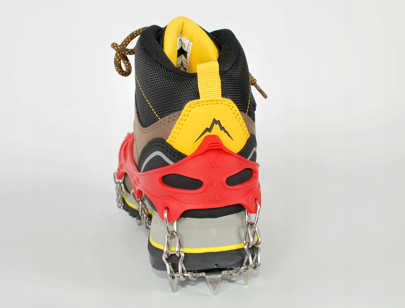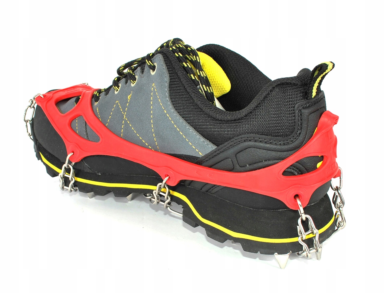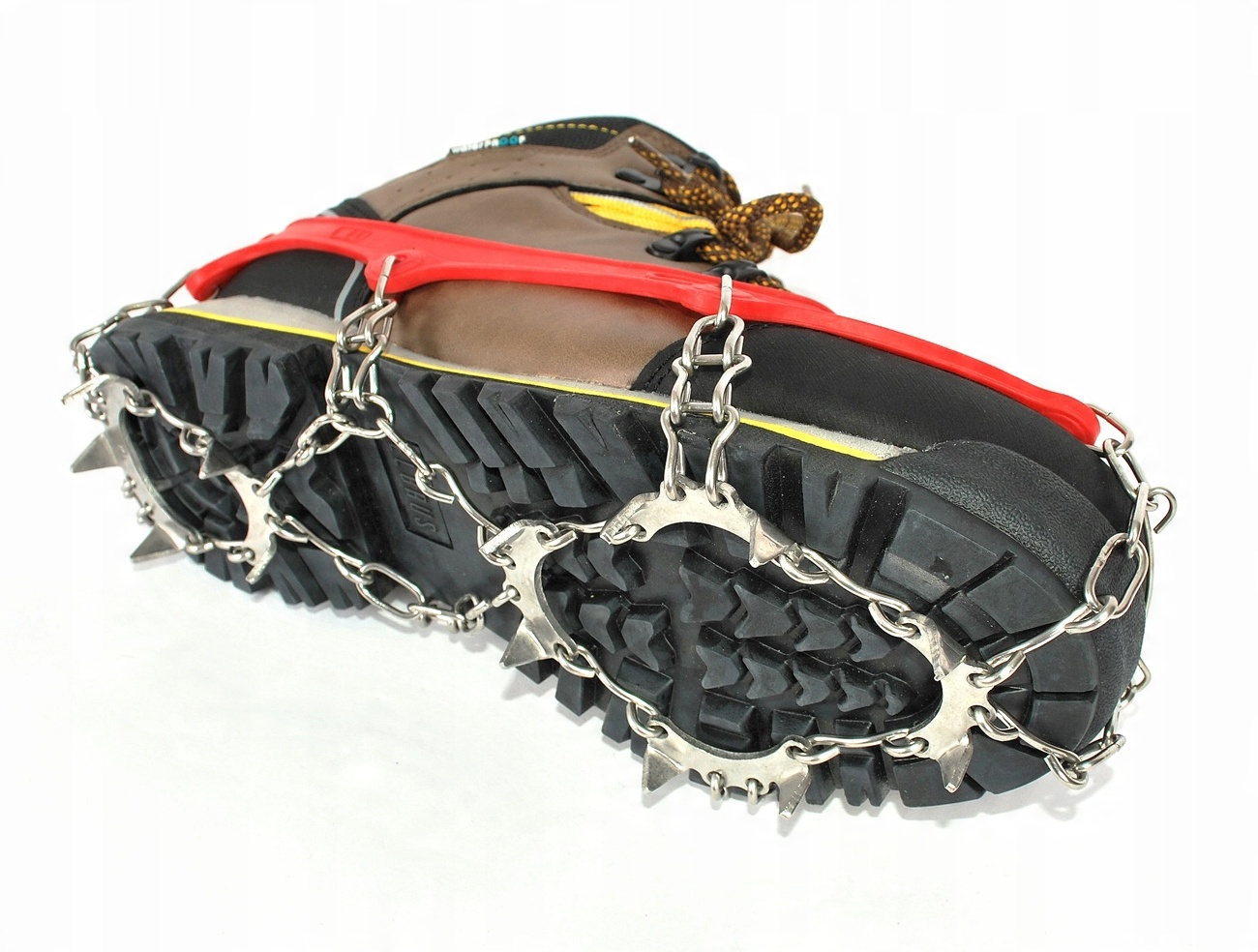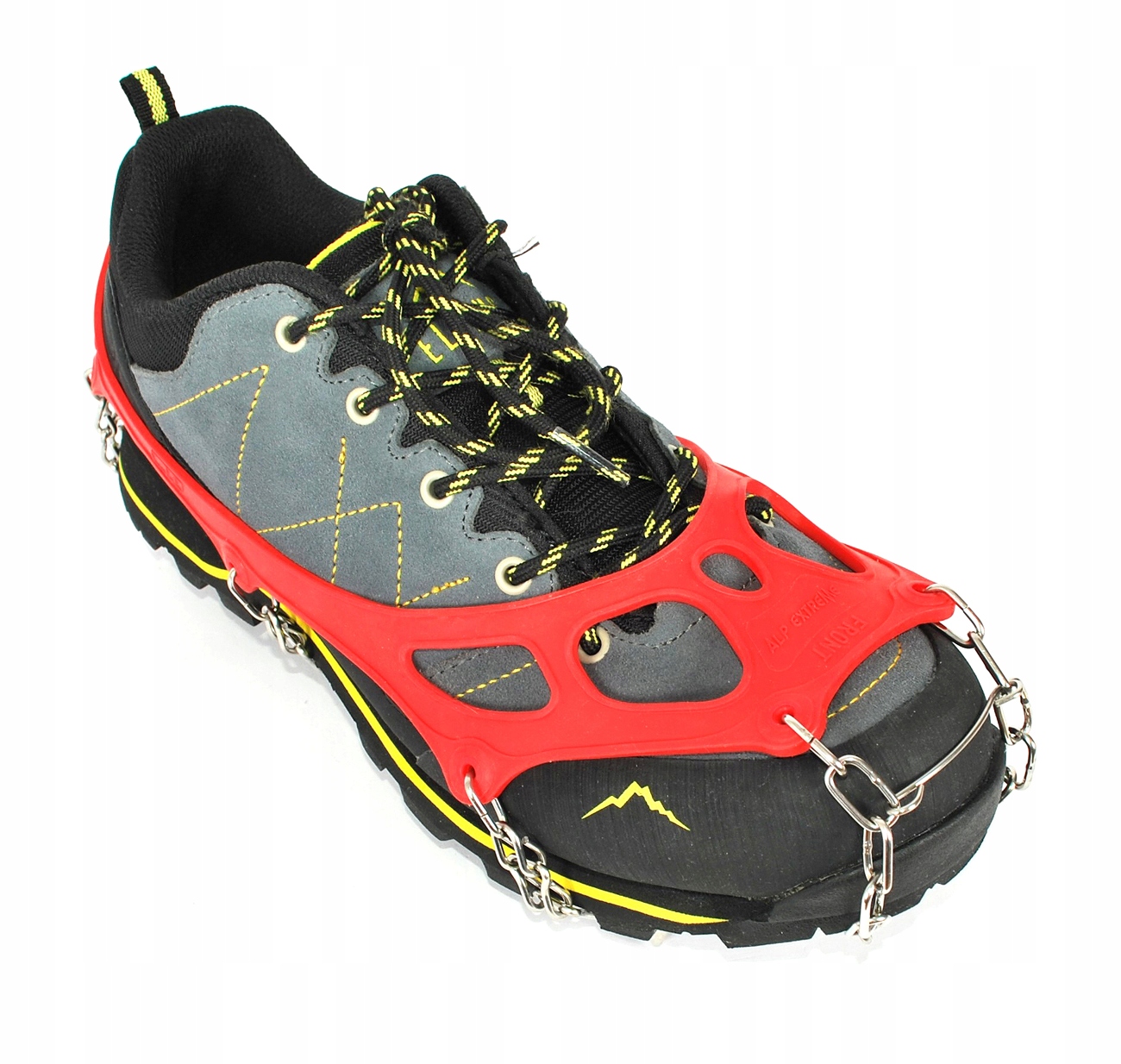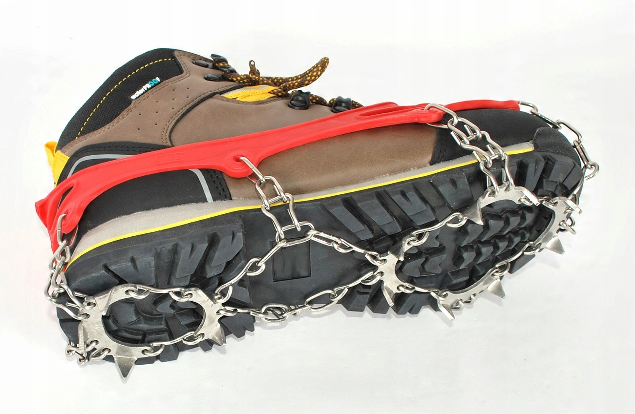 Ручки мають 13 сталевих, загартованих зубців із нержавіючої сталі, прикріплених до гумового затискача з ланцюжками. Вони ідеально підходять для крижаних поверхонь, як у міських зимових умовах, так і на трейлі.