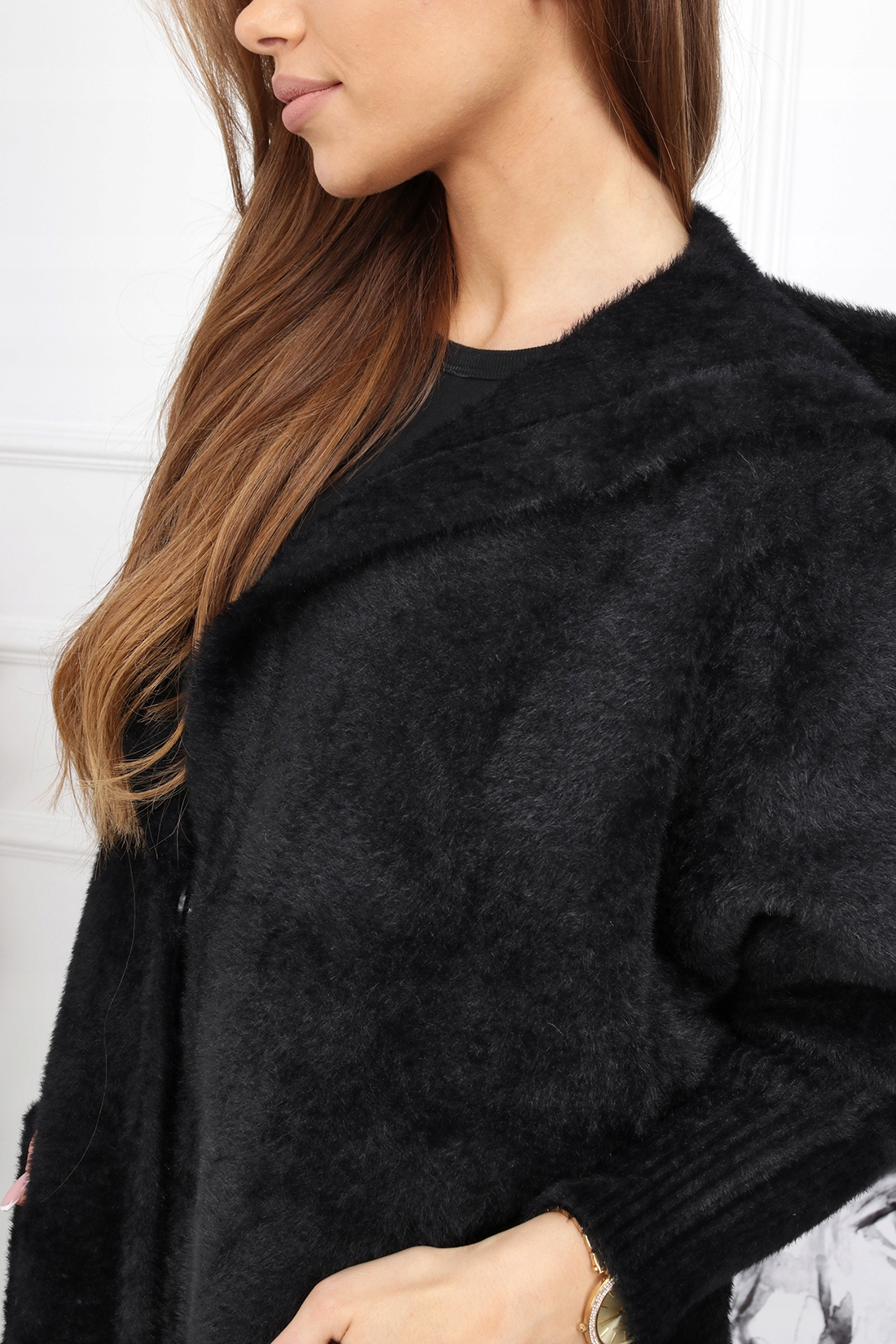 Альпака Жіночий піджак з тепловим светр довгий капюшон Чорний кран 1946
