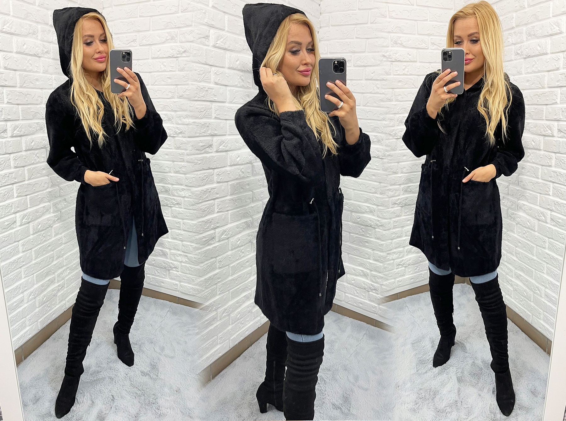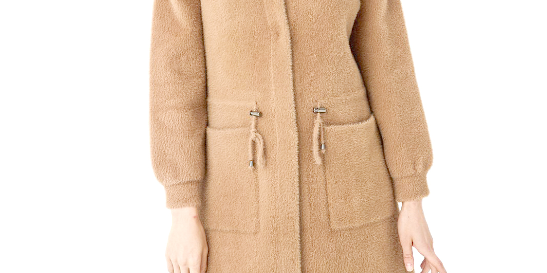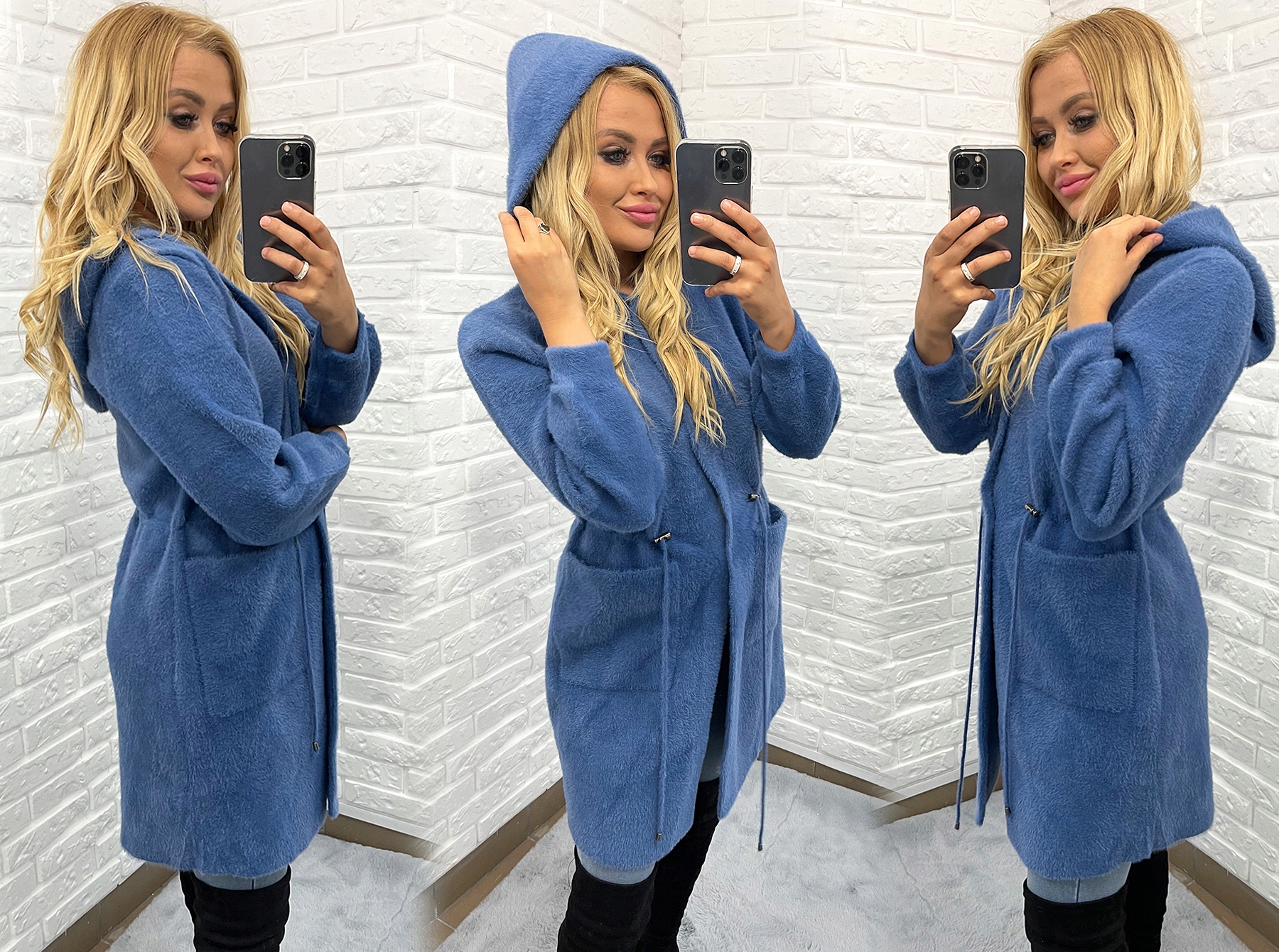 Високоякісне пальто в стилі Альпака, дуже ніжне та м'яке на дотик. Пальто з капюшоном, злегка розкльошеного крою, ідеально сидить по фігурі.