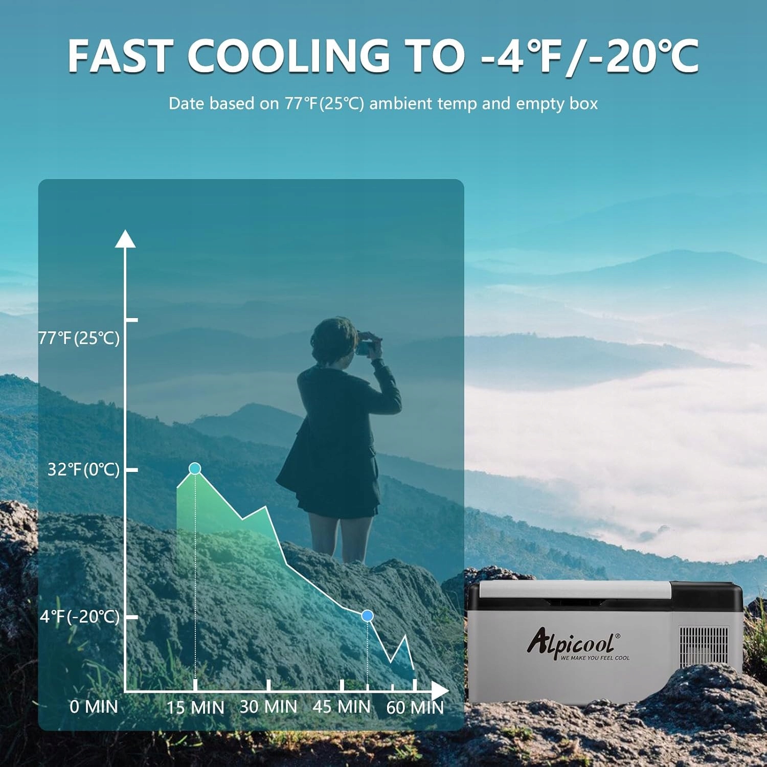 Завдяки ефективному компресору холодильник Alpicool EC15 охолоджує лише -20 ° C! Це означає, що він не тільки охолоджує напої, але й заморожує продукцію і тривалий час зберігає їх у ідеальному стані.
