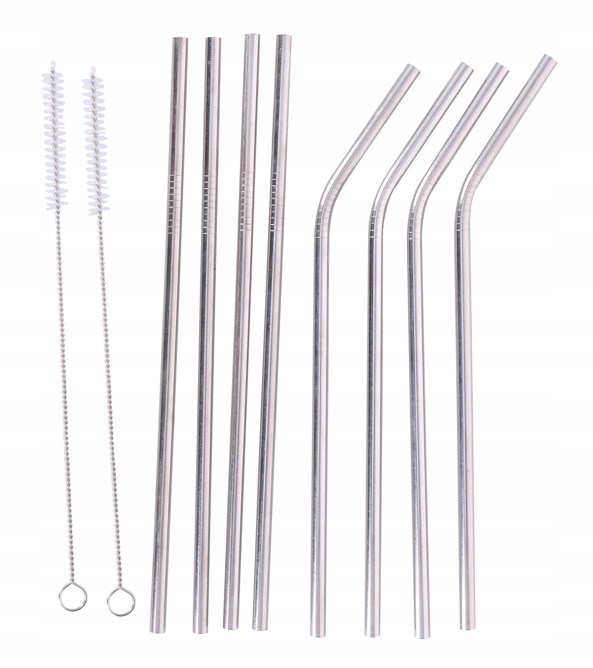 - Набір складається з 4 штук зігнутих соломинок, 4 штук прямих соломинок і 2 штук щіток для чищення