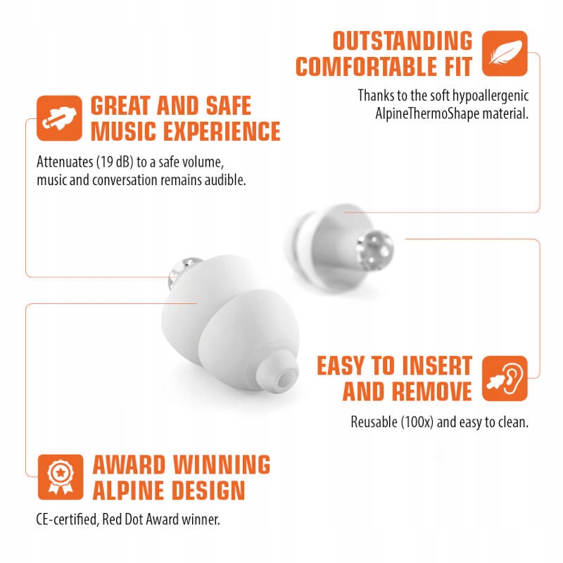 ALPINE PARTY PLUG 2.O - ОСТАННЯ ВЕРСІЯ - БІЛИЙ КОЛІР