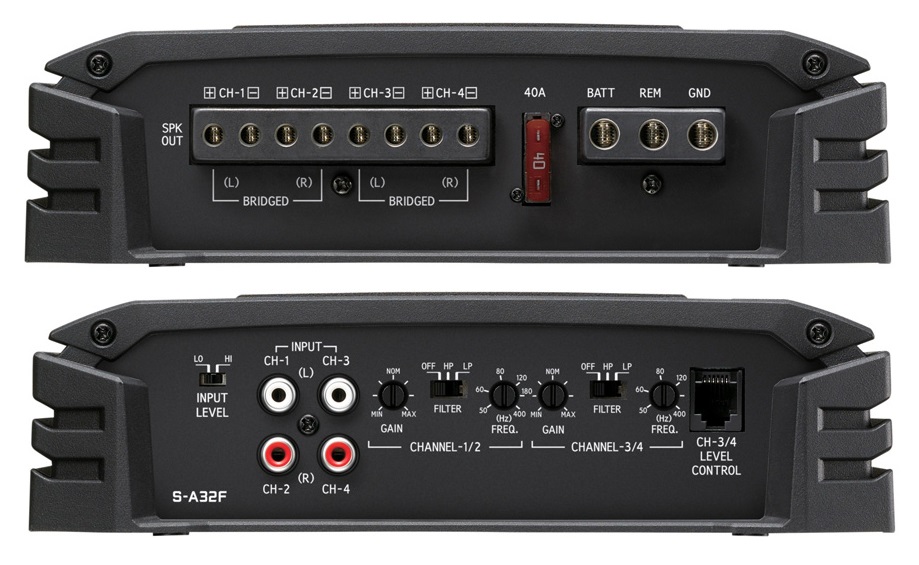 Ви можете підключати вхідні сигнали до 4 каналів безпосередньо від заводських кабелів, що йдуть до колонок. Тому немає необхідності використовувати зовнішні перетворювачі. Це робить підсилювачі «S» ідеальними для модернізації та вторинних систем. Елементи управління полегшують збірку. Кабельні з’єднання прикручені зверху та добре закріплені.