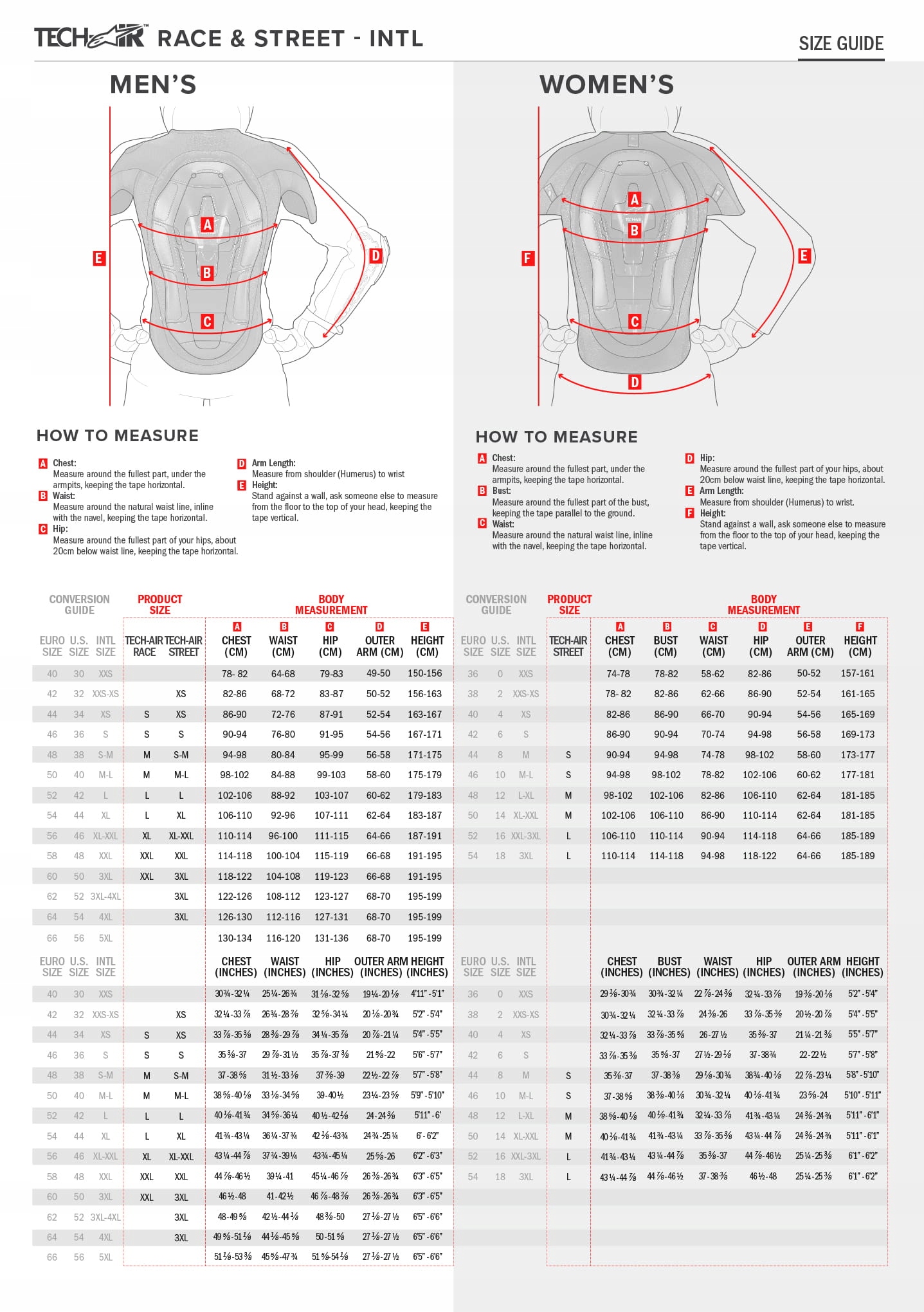 (1*) Жилет Alpinestars Tech-Air® 5 був розроблений для носіння під будь-яку добре приписану текстильну куртку, пам’ятаючи, що піджак повинна бути достатньо великою, щоб вмістити зростання подушки безпеки у разі аварії. У випадку з текстильними куртками це вимагає додаткового місця на 4 см навколо окружності тіла. Tech-Air® 5 можна також носити зі шкіряними куртками, сумісними з Tech-Air®, які мають вбудовані шкіряні панелі для розширення для розміщення надувної подушки безпеки. Мотоциклісти, які хочуть носити шкіряну куртку інших брендів, не сумісні з Tech-Air®, повинні переконатися, що куртка має додаткові 4 см місця навколо окружності всієї грудей.