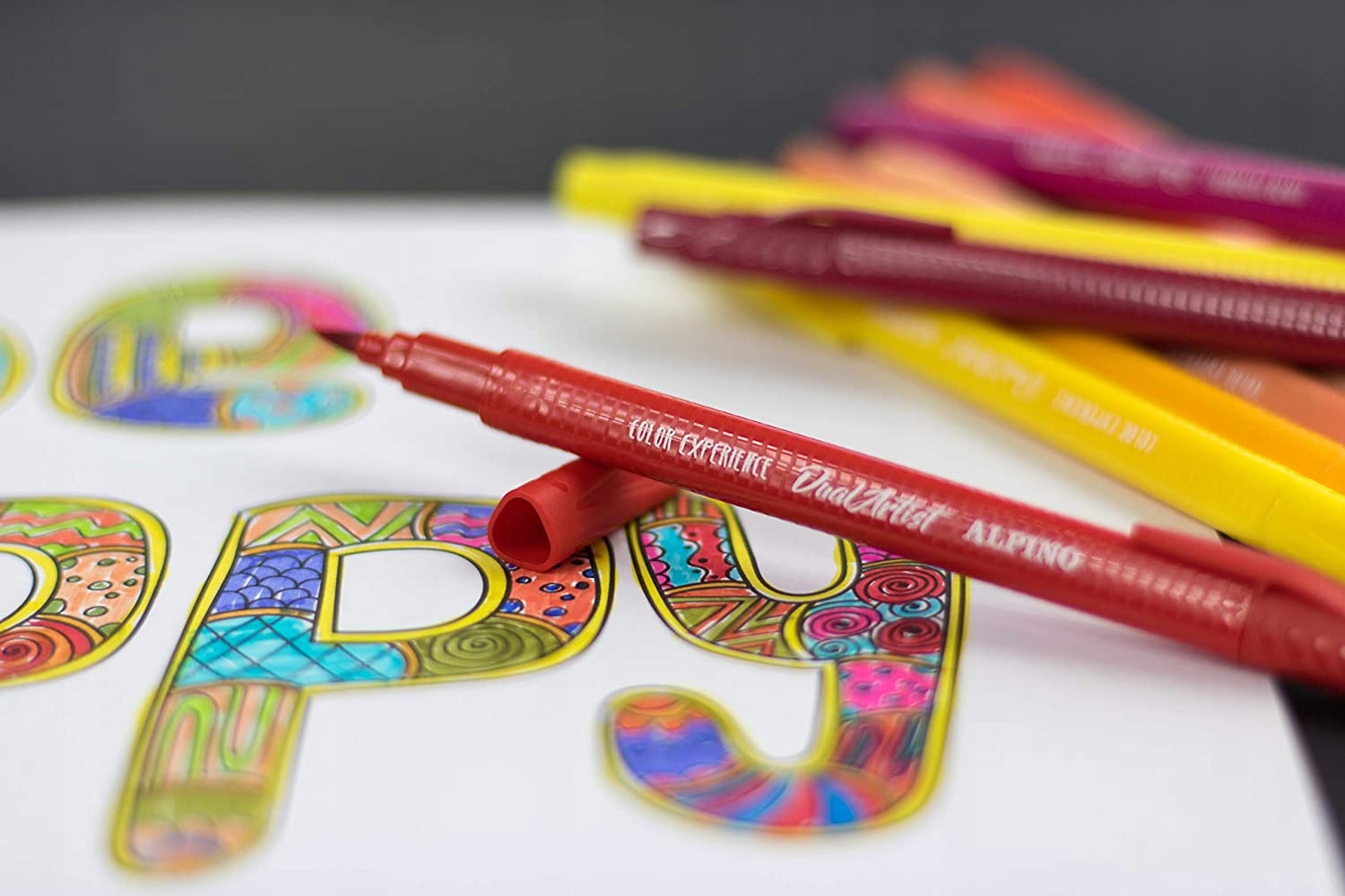 - Двосторонні фломастери ALPINO з трикутною формою, що полегшує правильну руку формаергономічна ручка. Ідеально підходить для малювання та контуру.