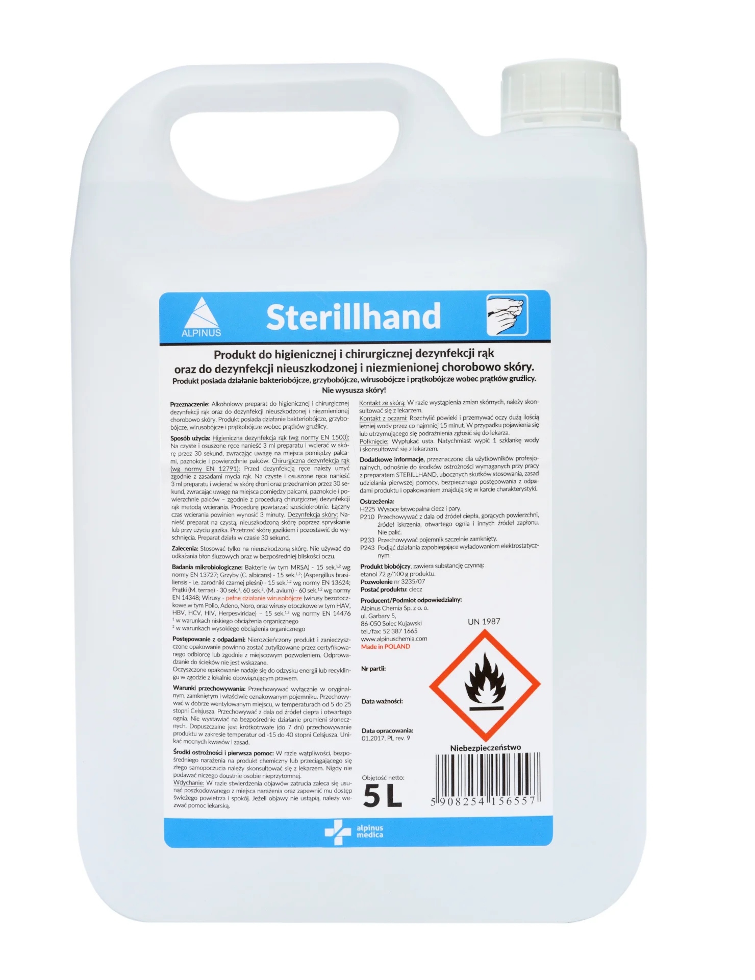 Просматривая «ALPINUS Рідина для дезінфекції рук STERILLHAND 5 л», вы можете быть уверены, что данный товар из каталога «Стерилизация и дезинфекция» будет доставлен из Польши и проверен на целостность. В цене товара, указанной на сайте, учтена доставка из Польши. Внимание!!! Товары для Евросоюза, согласно законодательству стран Евросоюза, могут отличаться упаковкой или наполнением.