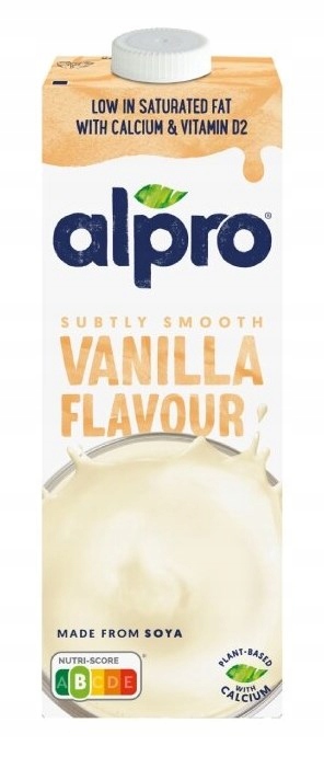 Соєвий напій Alpro зі смаком ванілі – чудова пропозиція, яка особливо сподобається веганам і вегетаріанці. Цей напій поєднує в собі чудовий солодкуватий смак, універсальність застосування та корисний поживний склад. Соєвий напій Alpro на 100% виготовлений на рослинній основі і не містить лактози та глютену, тому його можуть успішно вживати люди, які виключають ці інгредієнти зі свого раціону. Крім того, він містить велику кількість цінних для нашого здоров'я вітамінів і мікроелементів, серед яких: вітамін В12 (особливо важливий для людей, які дотримуються рослинної дієти), а також вітамін В2, D, кальцій і високоякісний рослинний білок. Соєвий напій зі смачним солодким смаком ванілі стане ідеальною основою для ранкової вівсянки. У поєднанні з вівсянкою, гранолою, свіжими фруктами та сухофруктами створюється надзвичайно апетитний сніданок, який заряджає енергією на решту дня та має чудовий смак.
