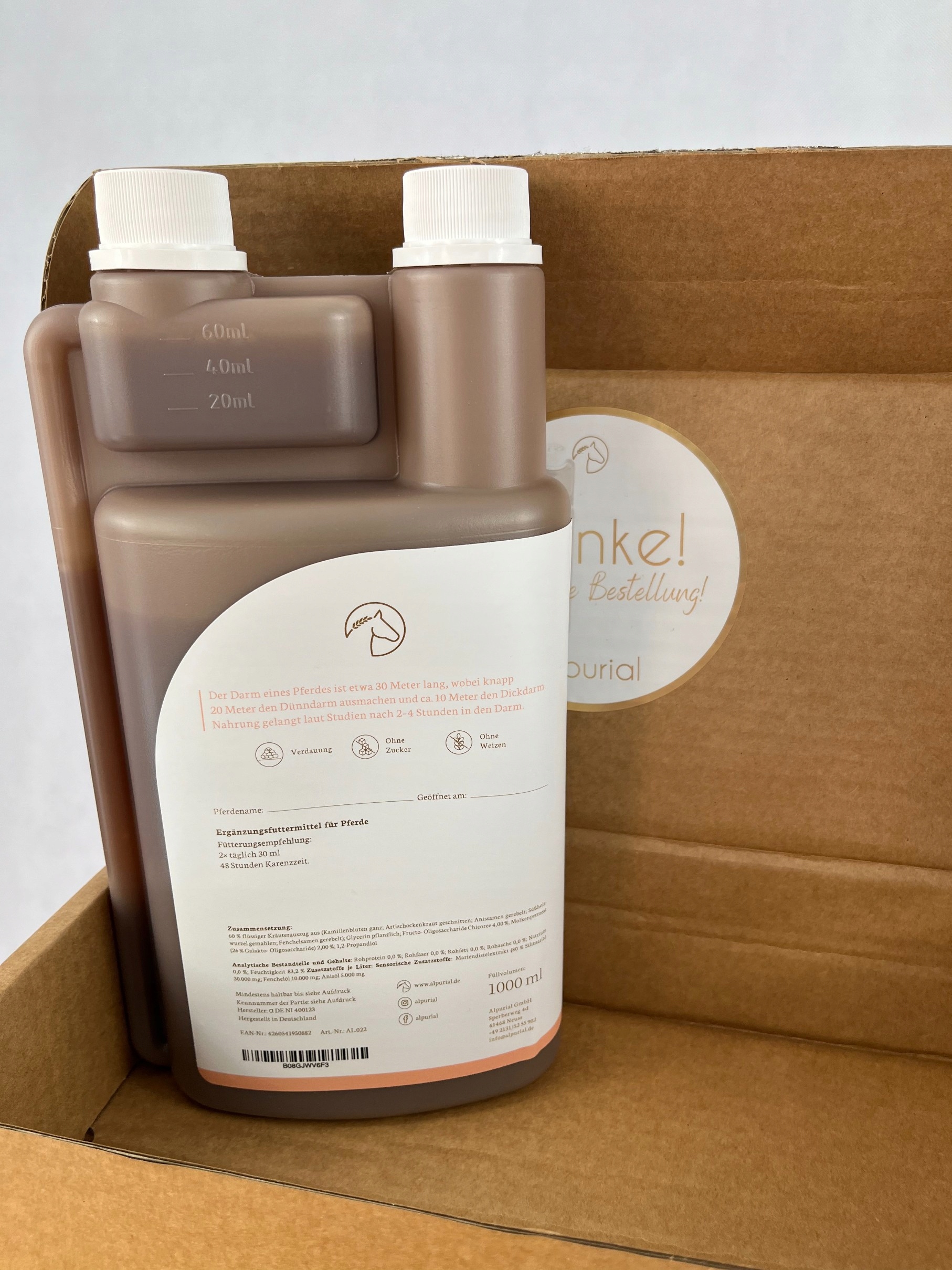 Представляємо вам революційний продукт Alpurial, спеціально створений для підтримки нервів стривожених коней. Ця унікальна формула об’ємом 1 літр була розроблена експертами з охорони здоров’я тварин, щоб дати вашому коню більш спокійне та збалансоване життя. Alpurial - це відповідь на потреби власників коней, які борються з нервовими проблемами у своїх коней.