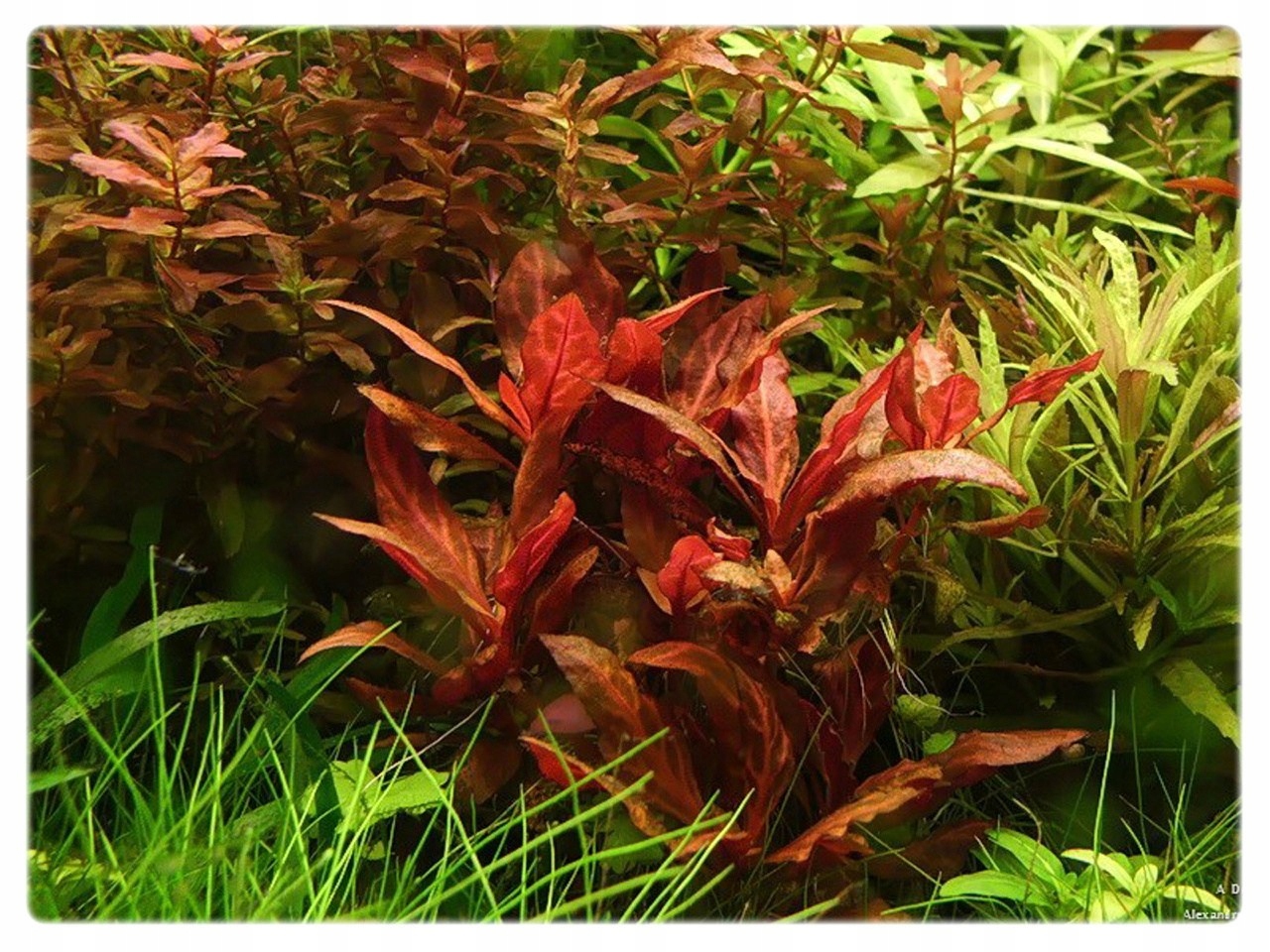 , ul> ul> ul> ul> ull> ull> ull> ull> ull> ull> ull> ull> ull> ull> ull> ull> ull> ull> ull> vawarium - ~ ~ 30 см. декоративна різноманітність альтернативних засобів для другого плану водосховища. У великих акваріумах його можна посадити як провідну рослину, де його слід регулярно вирізати для підтримки компактних розмірів. Його особливість - листя, прикрашені яскравими, контрастними іннервацією. Це виглядає цікаво, і його червоний добре відображається серед інших зелених рослин. Колір листя залежить від умов в акваріумі, може бути від рожевого до бордового падіння в коричневий. Рослина віддає перевагу інтенсивному освітленню. Розмноження відбувається шляхом різання. Умови вирощування