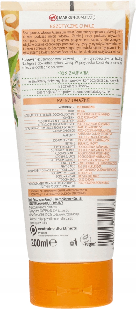 Шампунь із м’якими миючими речовинами та біоапельсиновим цвітом екстракт ніжно та ретельно очищає волосся.