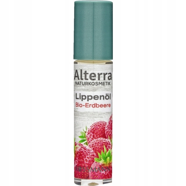 Олія для губ Alterra з високоякісним органічним екстрактом полуниці, мигдальною олією та олією виноградних кісточок також інтенсивно доглядає за сухими губами.