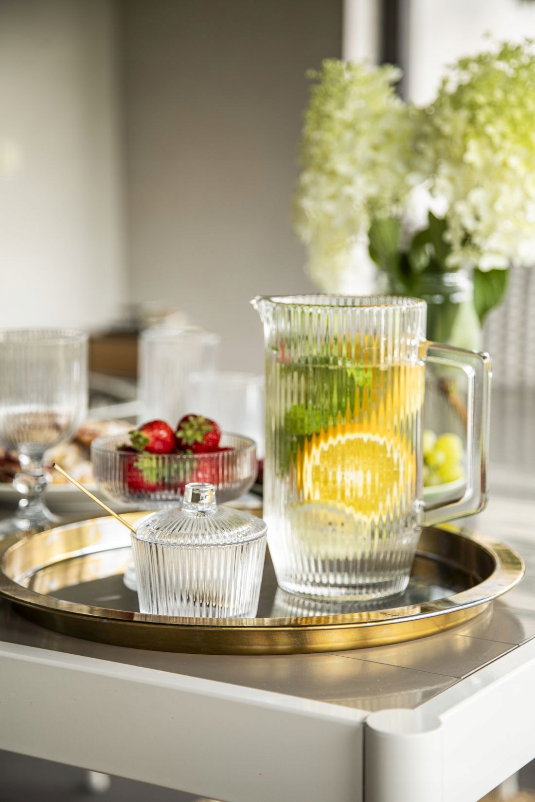 ☀ Стильне додавання. Виготовлений з прозорого скла, дозволяє естетичну порцію різних напоїв, від льоду та лимонної води, через свіжовичавлені соки, до заморожених чаїв та лимонаду. Завдяки прозорості, глечик дозволяє презентувати барвисті напої та добавки, такі як фрукти чи трави, що ще більше підкреслює їх привабливість.