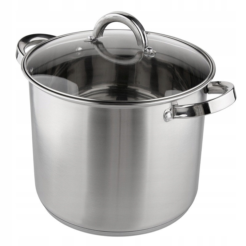 ВЕЛИКИЙ СТАЛЕВИЙ ГОРЩИК FABIO 22 СМ, 7 Л ЗІ СКЛЯНОЮ КРИШКОЮ