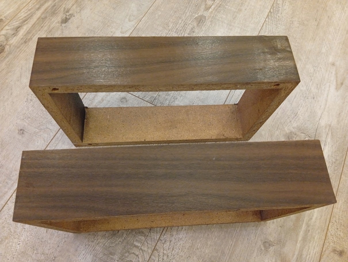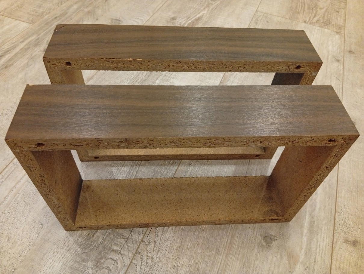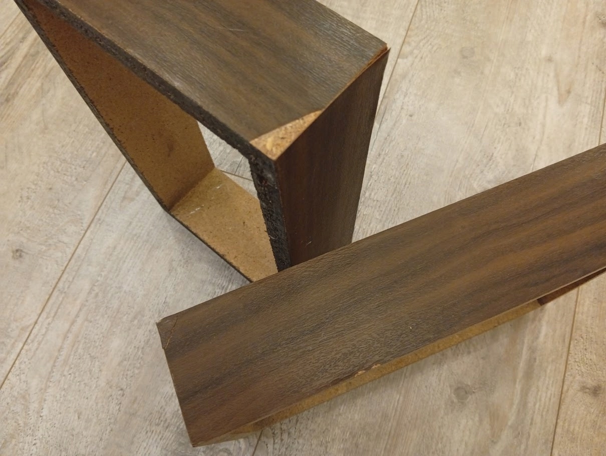 Колір: темний горіх, невеликий дефект: коричнева обшивка відшаровується з боків