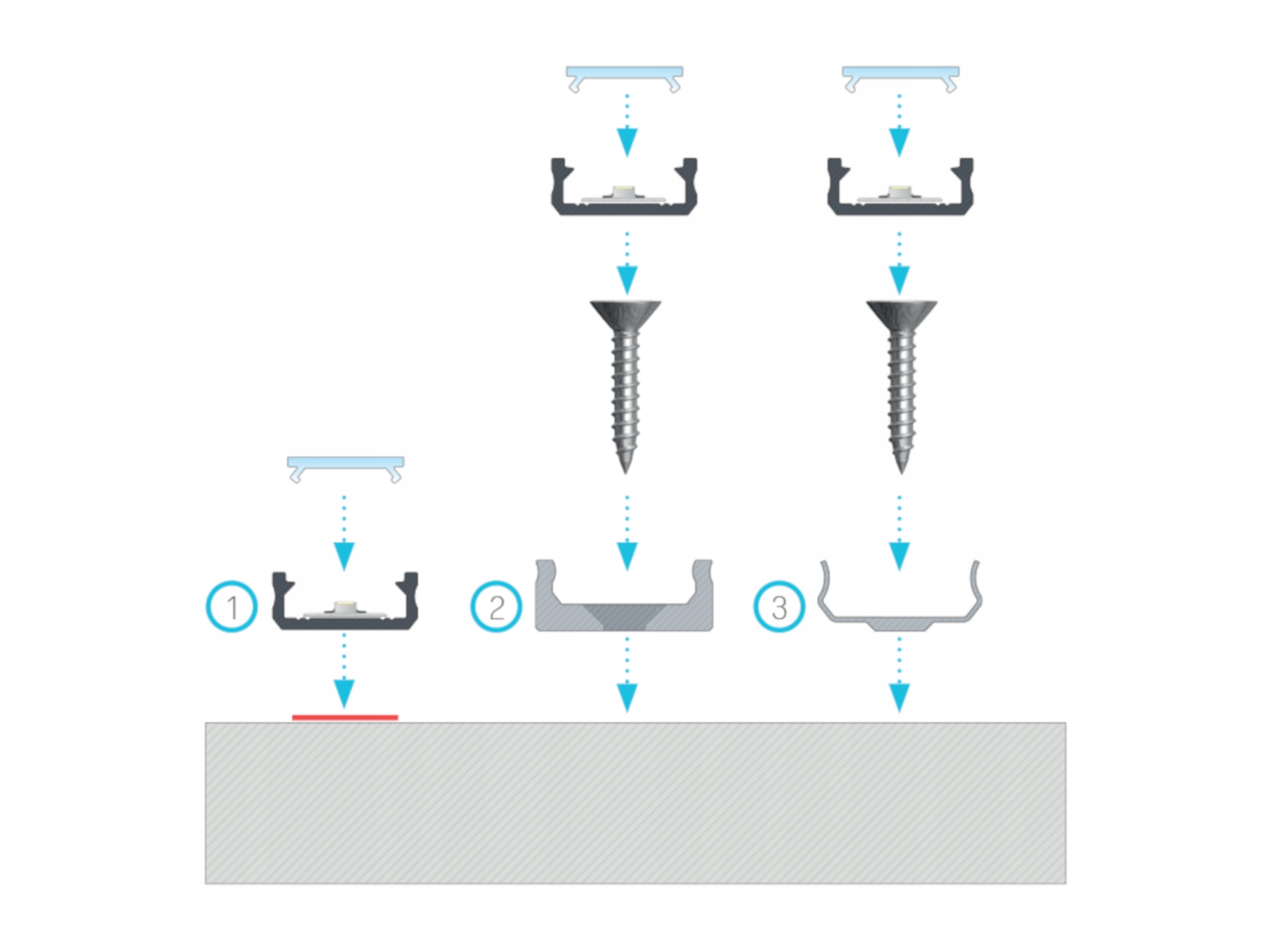 Профіль призначений для світлодіодних стрічок з максимальною шириною 12 мм. Якщо ви плануєте застосувати додатковий відтінок для профілю - пам’ятайте, що таке рішення для цього низького профілю може використовуватися лише для стрічок з низькою потужністю (рекомендована максимальна потужність становить 5 Вт/м). Профіль D з світильниками також не підходить для використання з водонепроникною стрічкою.