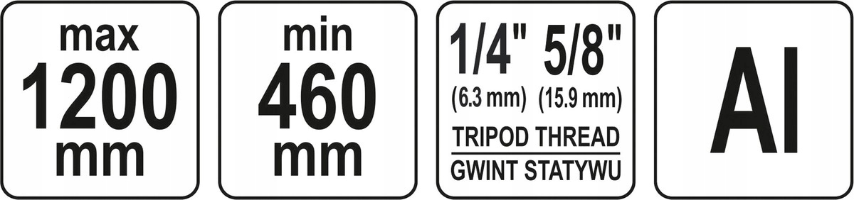 Алюмінієвий штатив /штатив/. Максимальна висота 1200 мм, мінімальна 460 мм.
