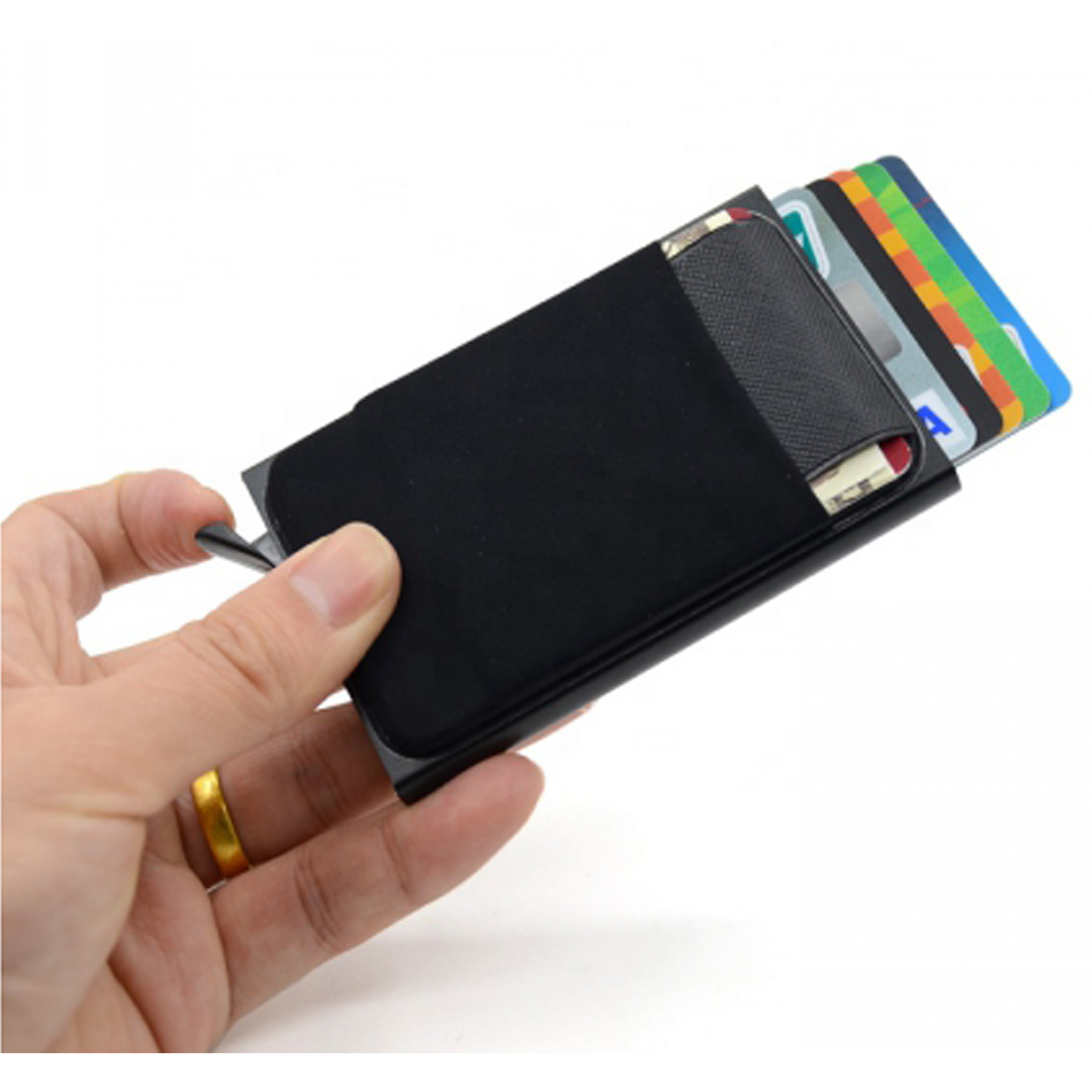 Алюмінієвий чоловічий гаманець із кнопкою виймання безконтактної картки