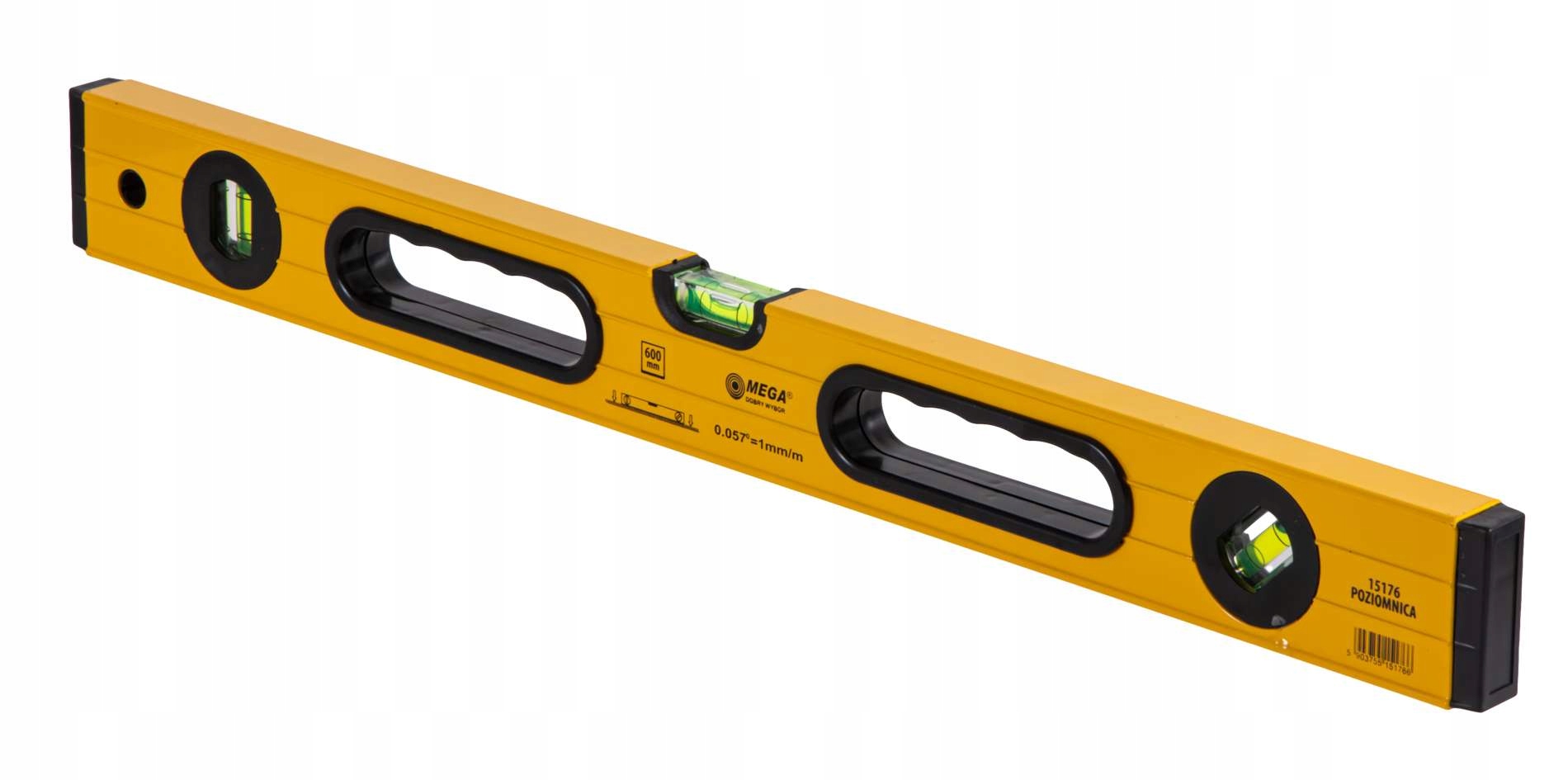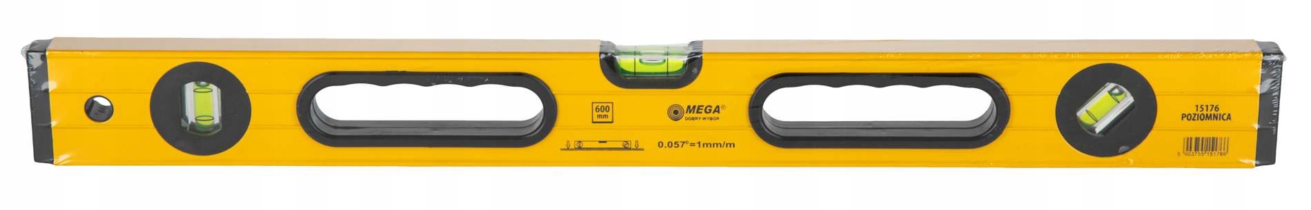 MEGA 15176 Рівень - це точний інструмент 600 мм з точністю 1 мм / 1 м. Він має корпус алюмінієвої коробки з ручкою і три лібер: горизонтальний, вертикальний і під кутом 45 °. Ідеально підходить для будівництва, встановлення та обробки. Він забезпечує високу точність, довговічність та зручність використання. Це надійний інструмент, який ідеально підходить для всіх умов.