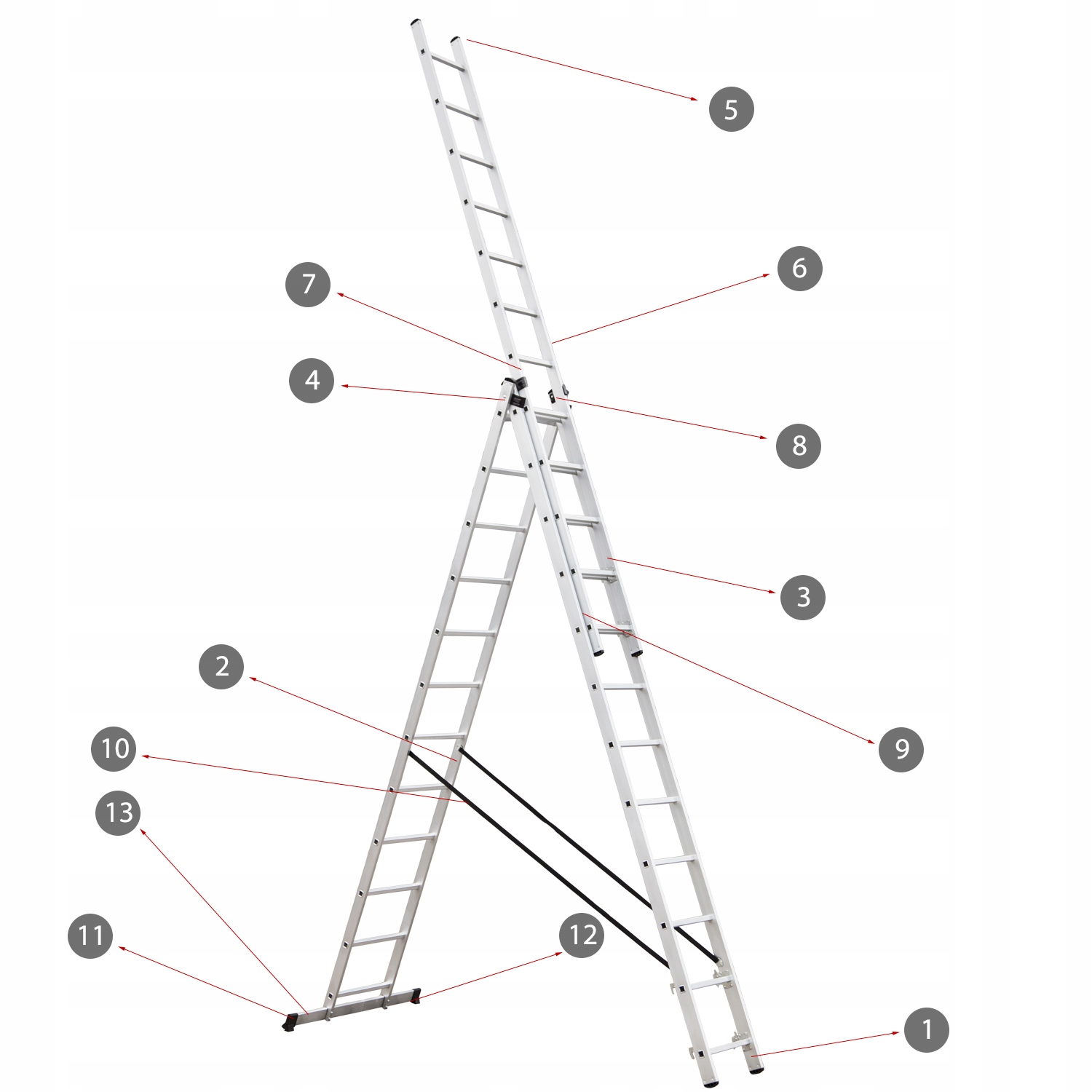 - 3-елементна драбина x 12 ступенів кожен елемент