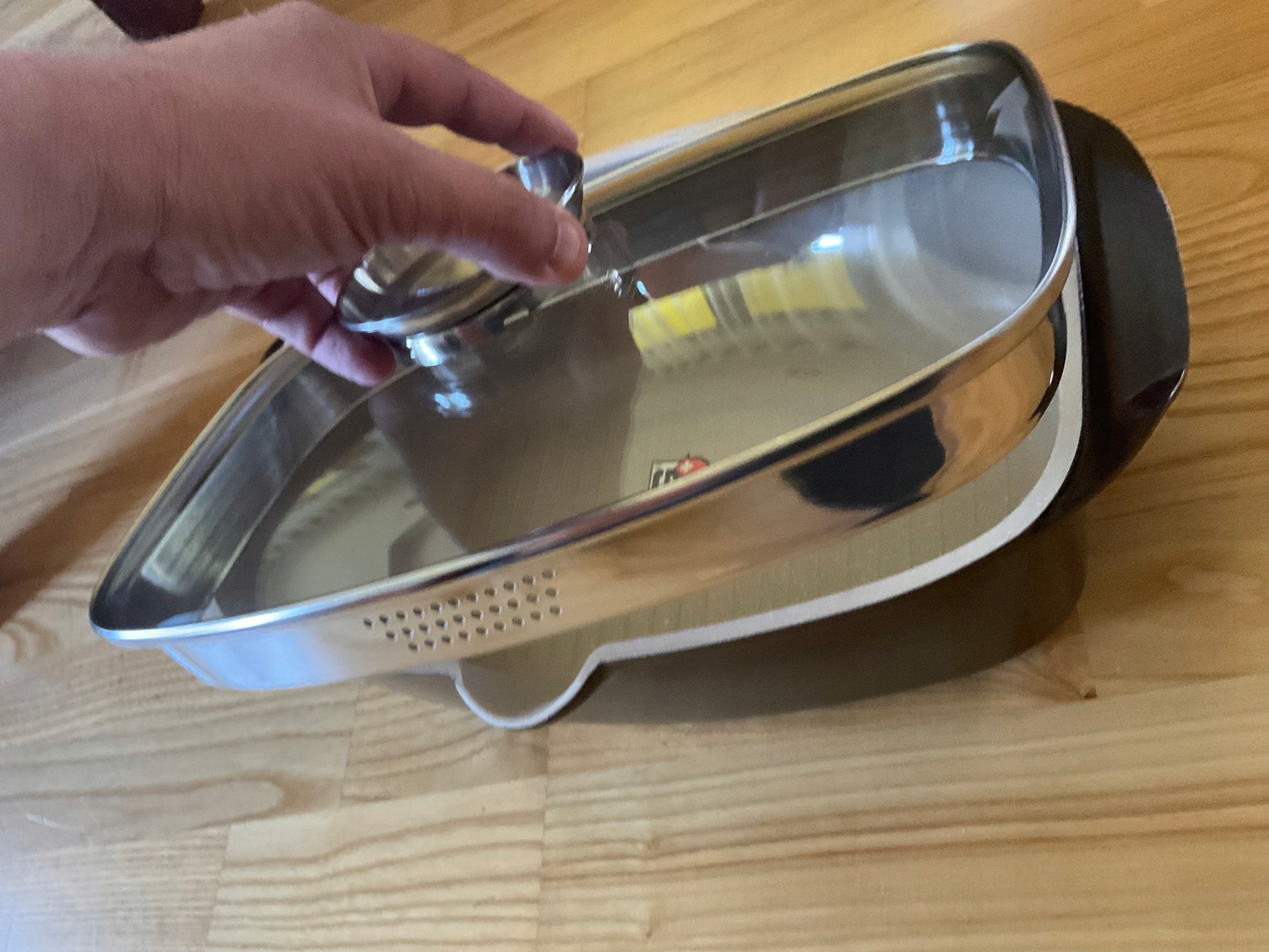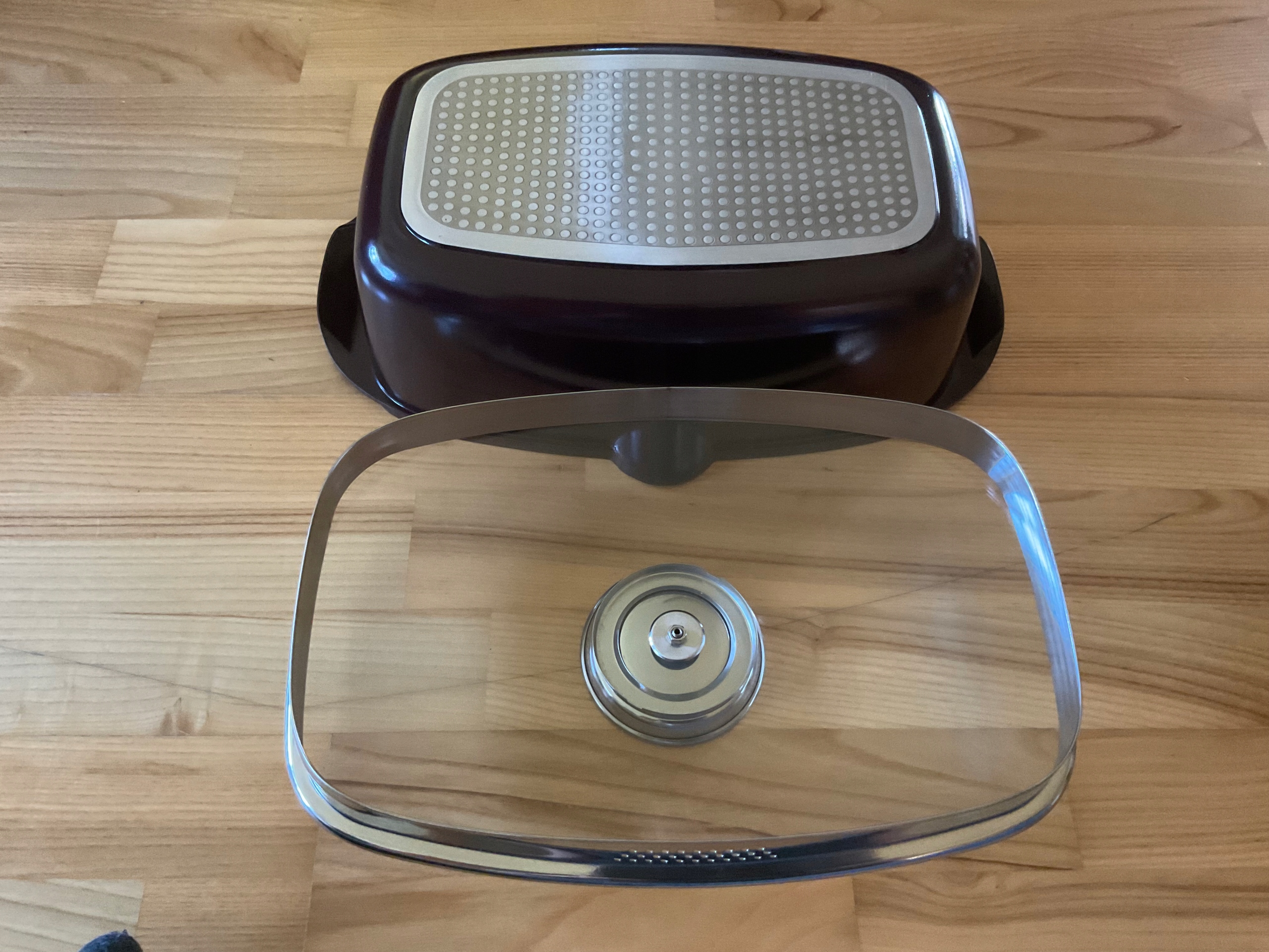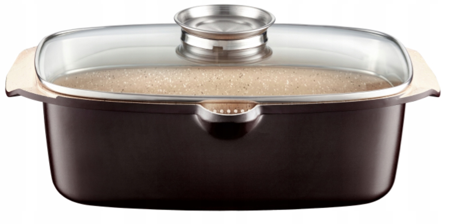 Британська з обкладинкою Aroma Knob System 32 x 21 см Внутрішня поверхня сковороди, натхненна природним каменем, нагадує граніт .