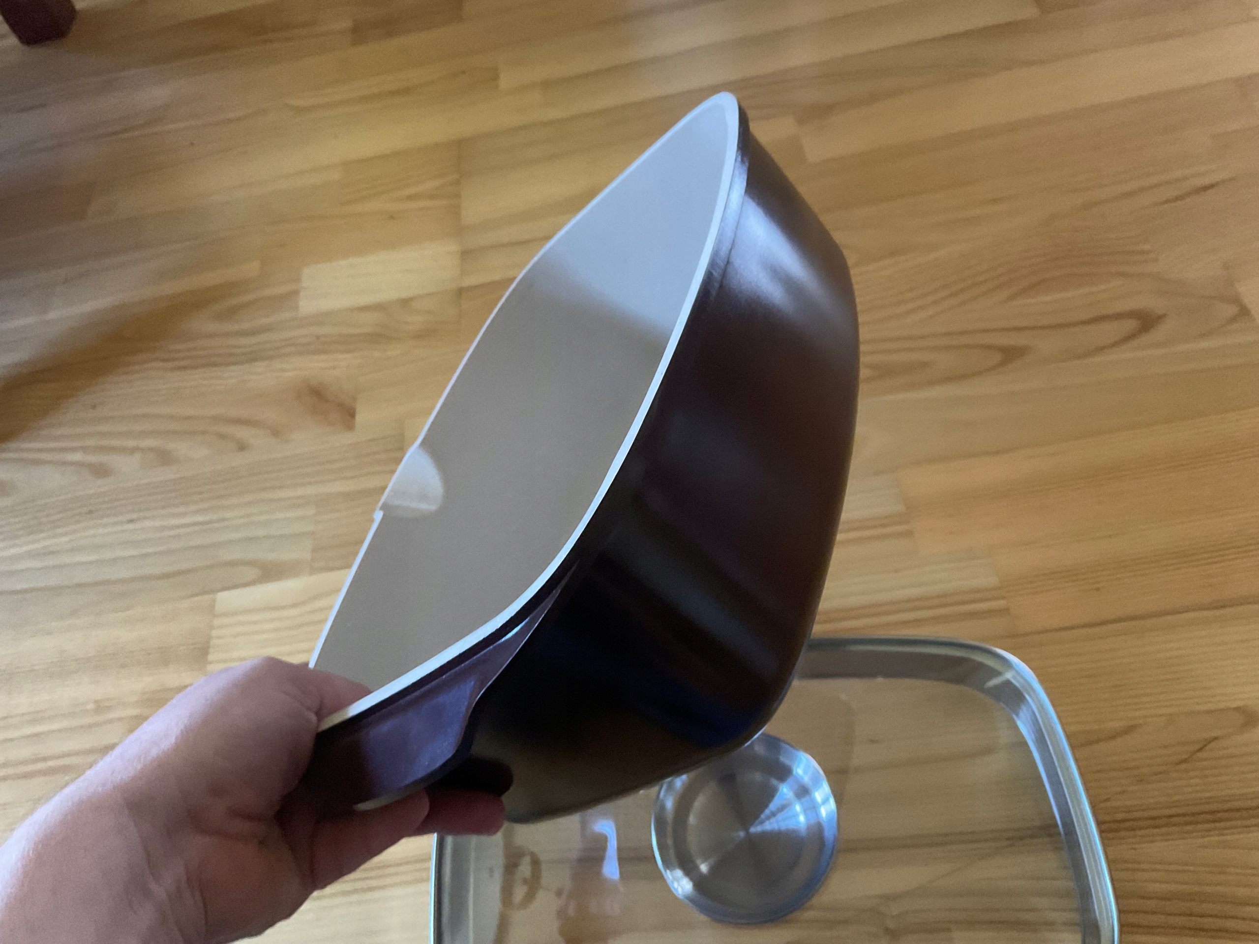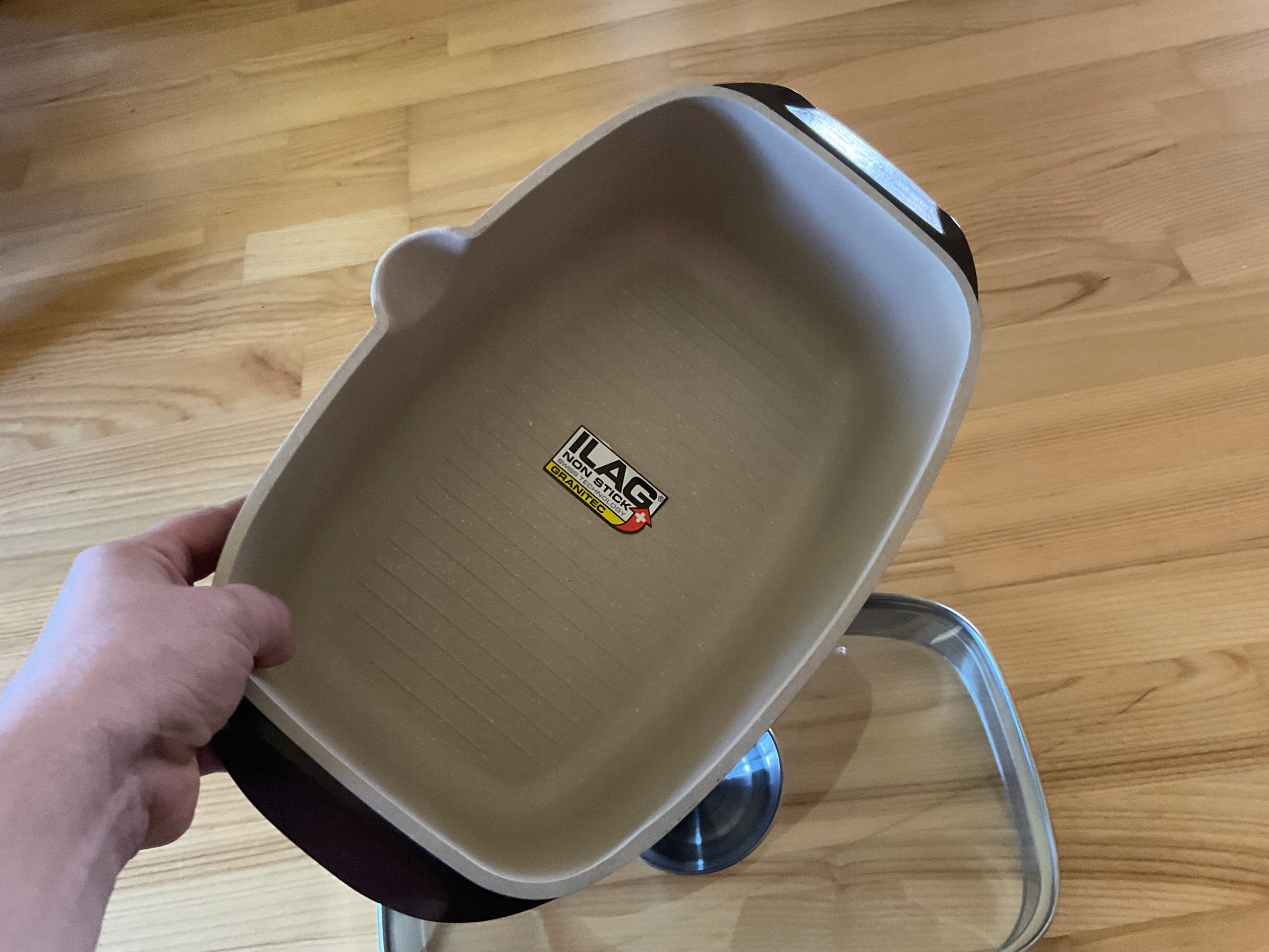 Виготовлений з запиленого алюмінію, стійкий до деформації. Всередині, покрите оригінальним швейцарським ністеровим покриттям ilag granitec. Це багатоклерне покриття з відмінними ненаустичними властивостями, керамічними та подряпинами, що стійкі. Це інноваційне рішення дозволяє зменшити втрату солі та природних мінералів у підготовлених стравах.