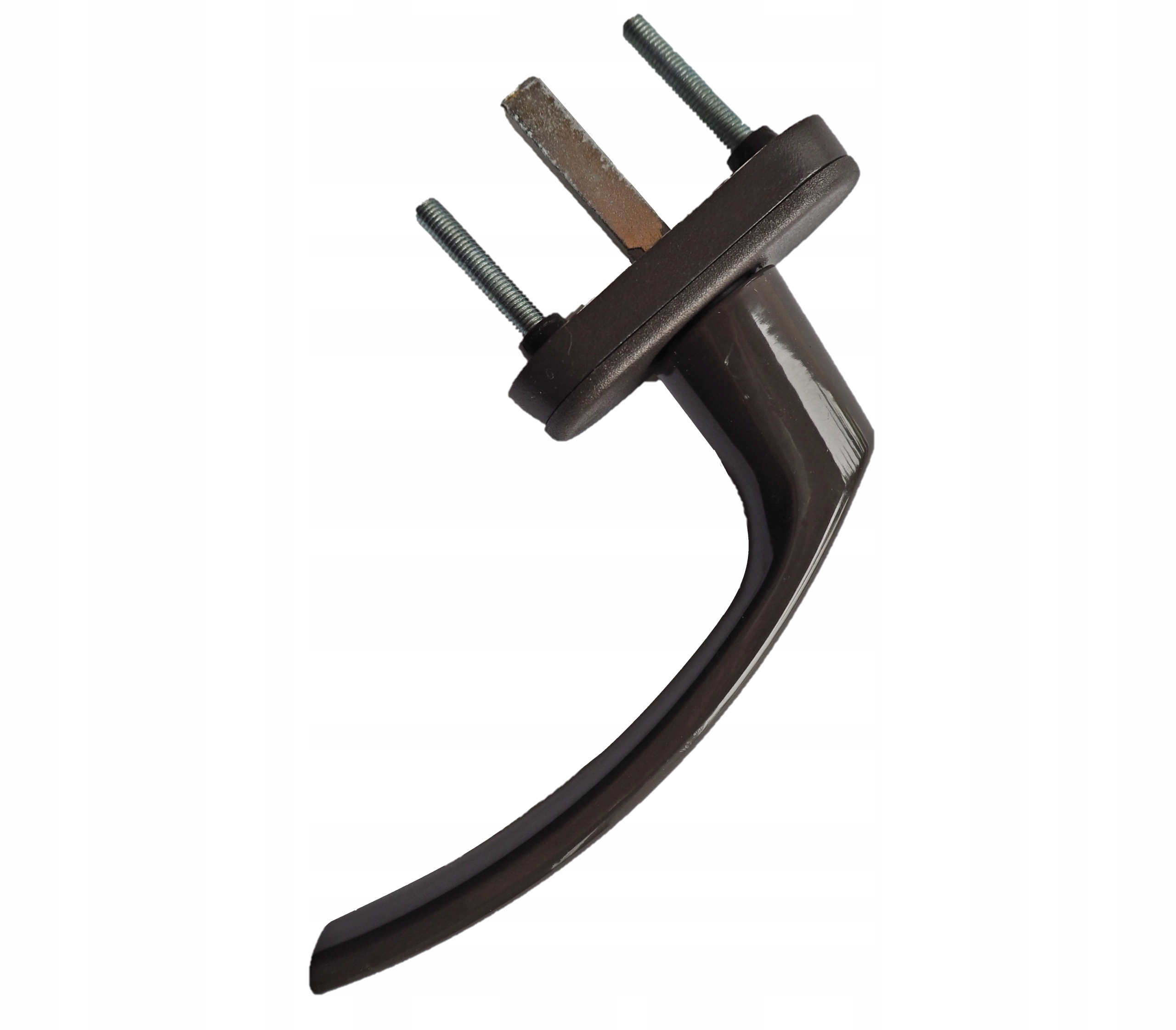Віконна ручка, захоплююча частина якої виготовлена з цинк-алюмінієвого сплаву, покритого порошковою фарбою, і кришка з ПВХ.