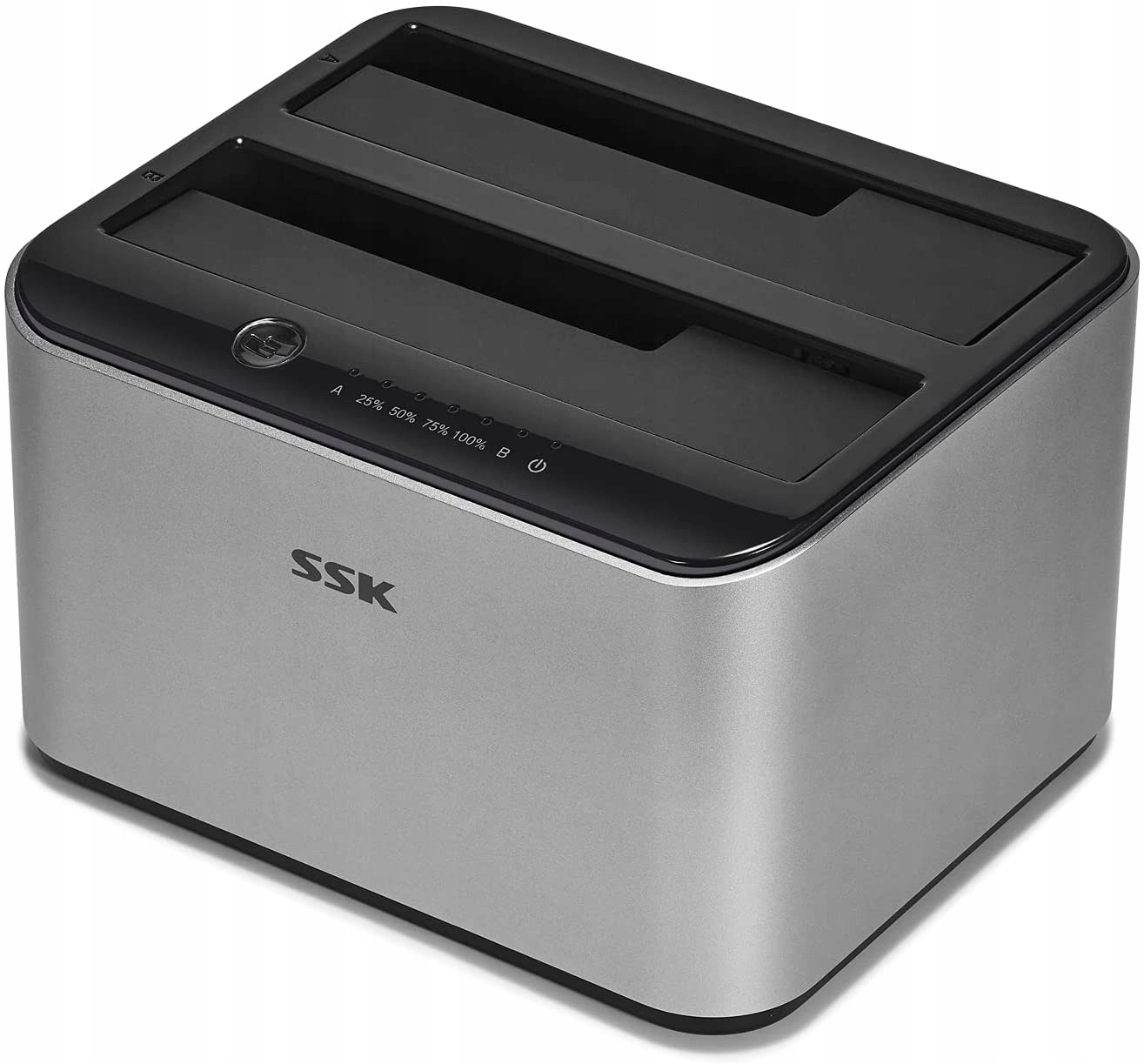 - 【Клонування в автономному режимі】Док-станція жорсткого диска SSK підтримує функцію копіювання клонування в автономному режимі, може використовуватися для клонування існуючого жорсткого диска без підключення до комп’ютера, легко дублювати дані з одного диска на інший жорсткий диск.