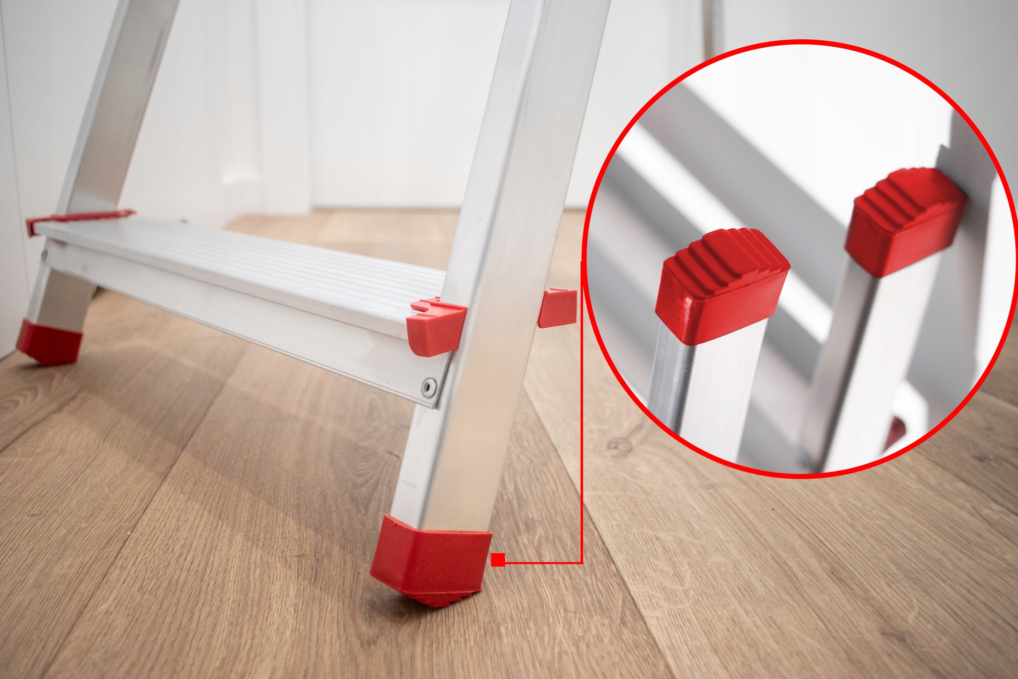 - Захист підлоги: фути стабілізують драбину і захистіть підлогу від подряпин, що важливо з делікатними поверхнями.