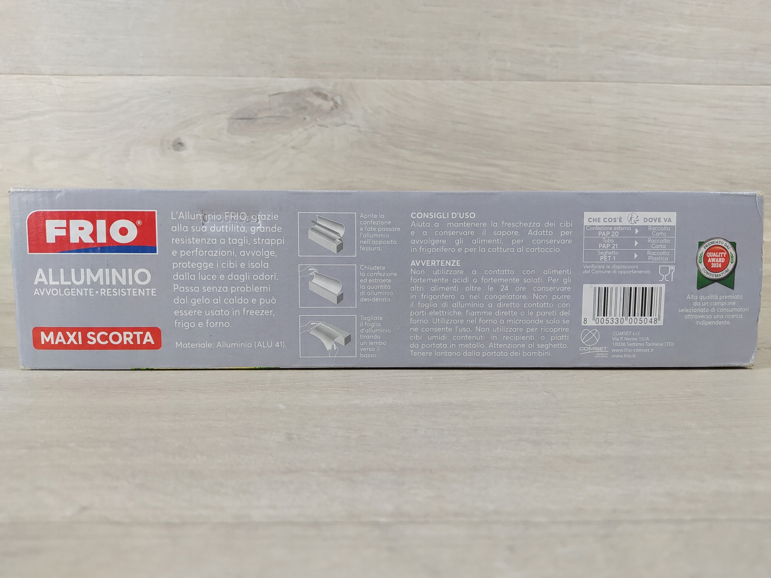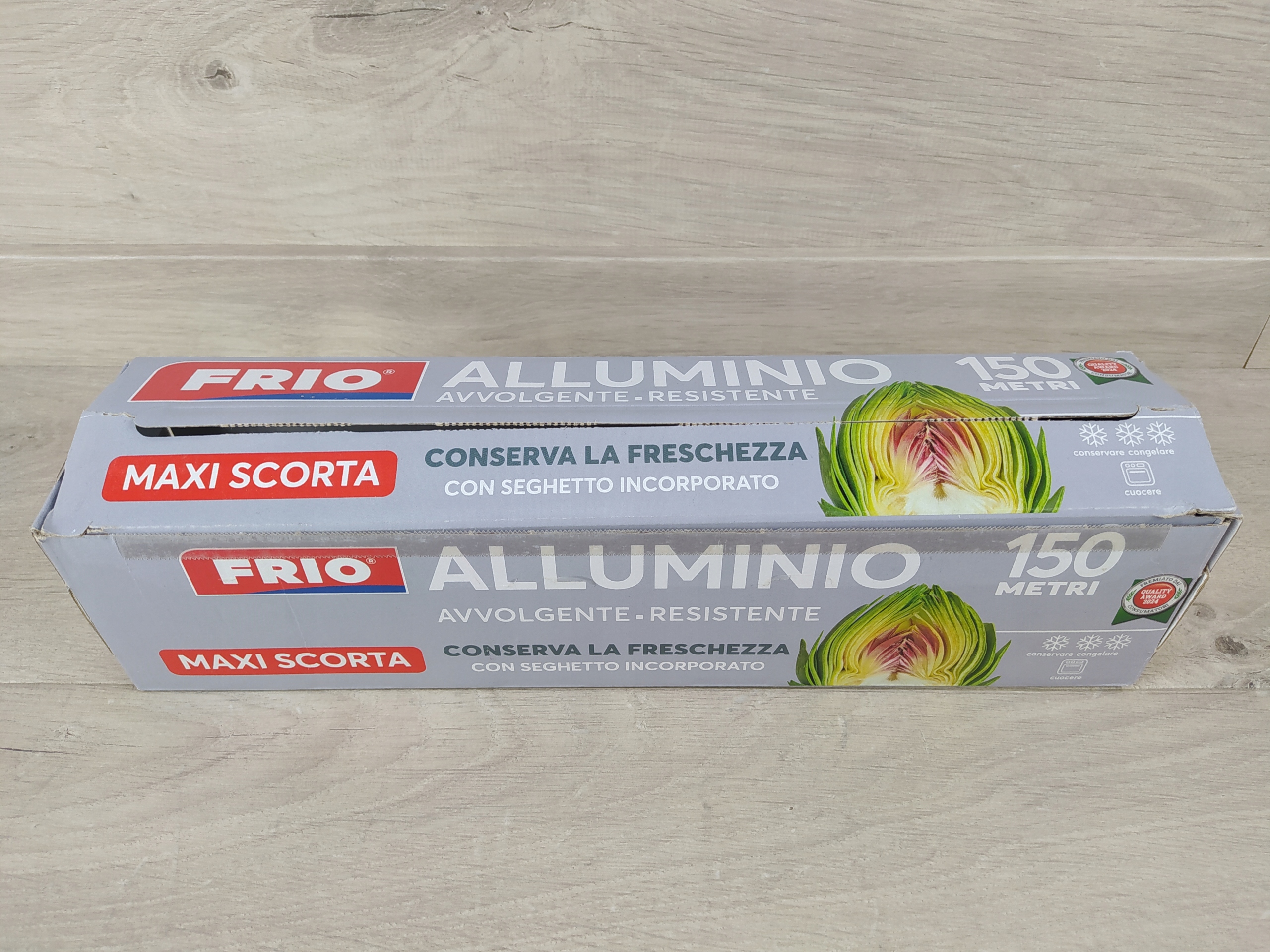 - Кухонний алюміній Frio є надзвичайно безперервним. Це алюмінієвий рулет, дозволений для контакту з їжею, яка легко витримує температуру від морозного до більш високої температури і може використовуватися в духовці, холодильнику та морозилці для приготування їжі та консервів. Упаковка та захист їжі, ізоляція її від світла та запахів.