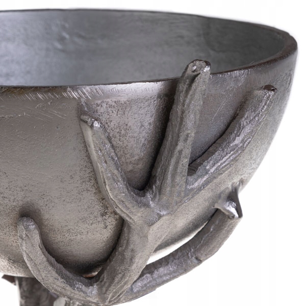 Унікальна чаша на оленячих рогах, виготовлена з алюмінію, обов’язкова, якщо ви хочете неповторно прикрасити інтер’єр вітальні чи кухні. Він ідеально впишеться в будь-який інтер'єр, а подані в ньому делікатеси будуть представлені в привабливому і привабливому вигляді. Чаша чудово підійде як подарунок, так і як елемент декору для банкетних залів.